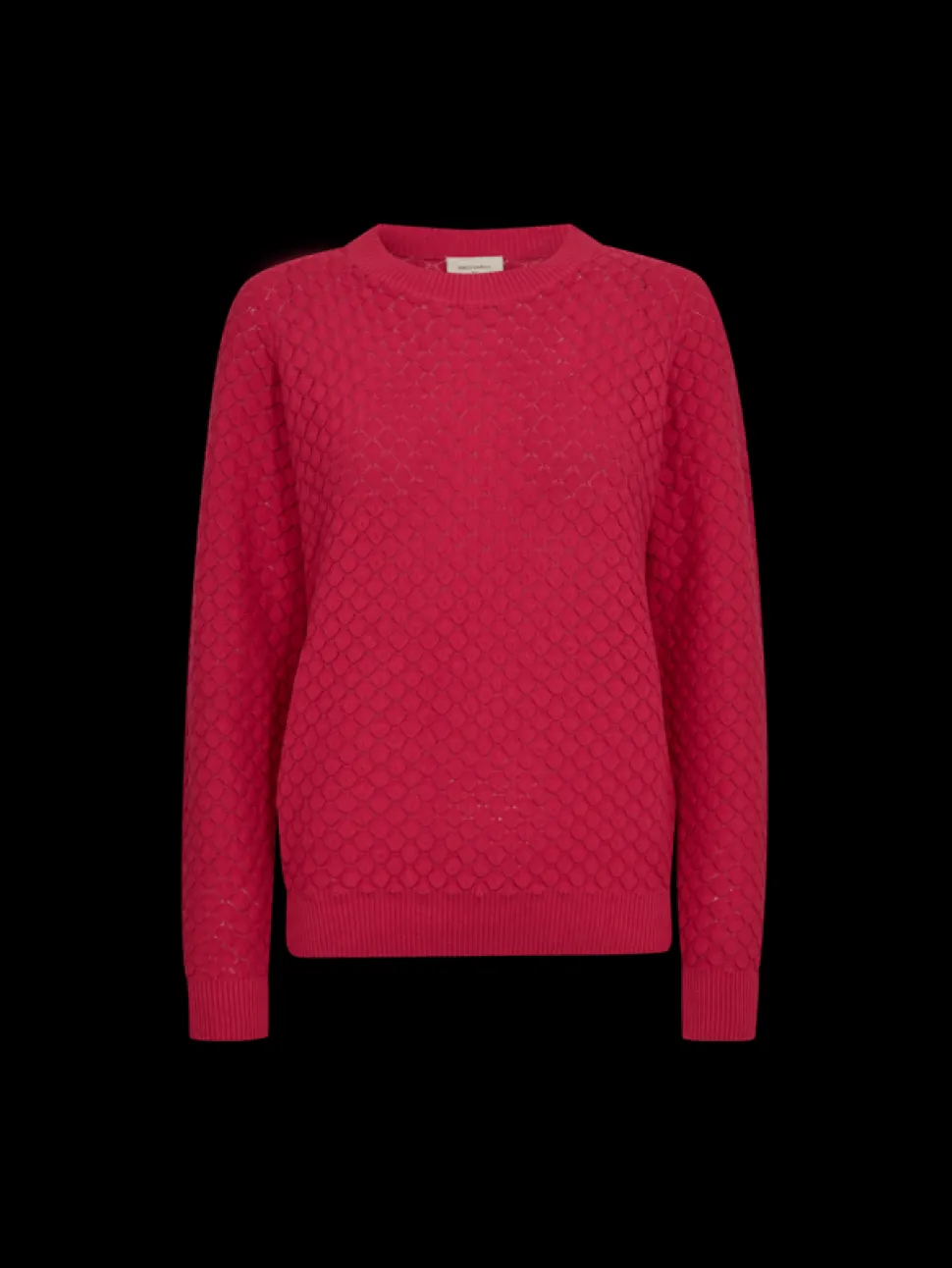 Pehmeä puuvillaneule pyöreällä pääntiellä. Neuleessa on pitkät hihat joidenka suissa on joustavat resorit.