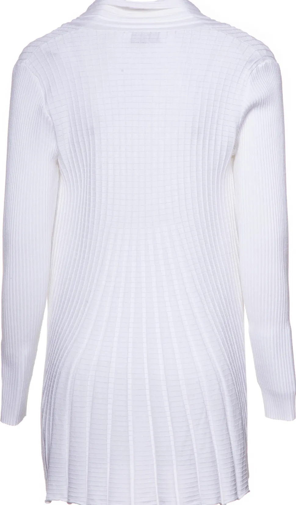 Naisten ohut, pitkä neuletakki. Kaunista koristeneulosta, edessä ei kiinnityksiä. Koossa M pituus n.83 cm.