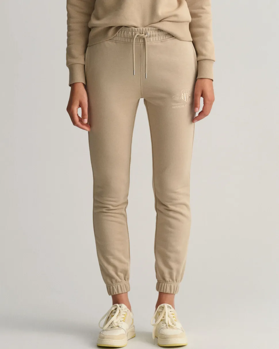 Regular fit ‑mitoitus Normaali vyötärö Joustava kiristysnauhallinen vyötärö Vasemmassa lahkeessa GANT-logokirjailu Malli on 181 cm pitkä ja käyttää kokoa 36