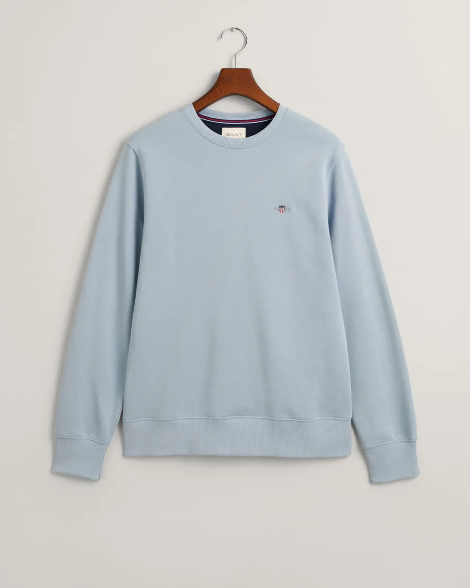 Gant miesten collagepaita. Pyöreällä pääntiellä varustetussa collegepaidassa on pieni kirjailtu vaakunakuvio rinnassa sekä pehmeät pääntie-, hiha- ja helmaresorit. Monikäyttöinen vaate sopii hyvin farkkujen, räätälöityjen housujen tai collegehousujen kanssa.