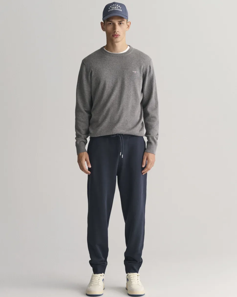 Gantin miesten pehmeät ja rennot collegehousut sopivat sporttiseen tyyliin ja rentoon arkeen neuleiden, t-paitojen ja collegepaitojen kaveriksi. Housuissa sivutaskut, yksi takatasku, lahkeensuissa sekä vyötäröllä resorit ja lisäksi vyötäröllä kiristysnyöri. Mukavan rento housu on viimeistelty Gantin hillityllä logolla.