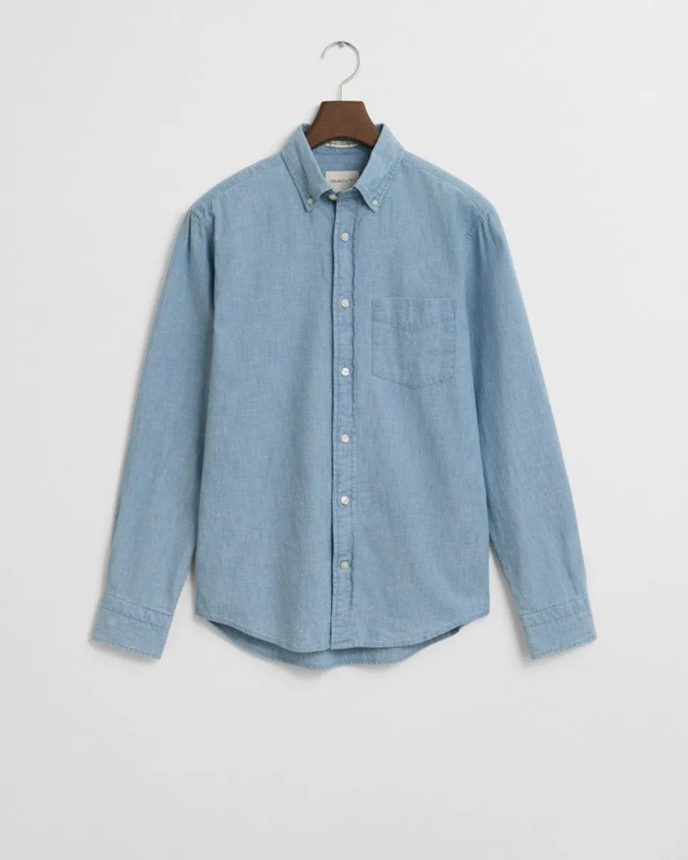 Ensiluokkaisesta indigonsinisestä chambray-kankaasta valmistettu paita on leikattu normaaliksi ja siinä on klassinen napitettava kaulus. Yksityiskohtaisessa designissa on säädettävät hihansuut, kaareva helma, kierrätetystä polyesteristä valmistetut napit