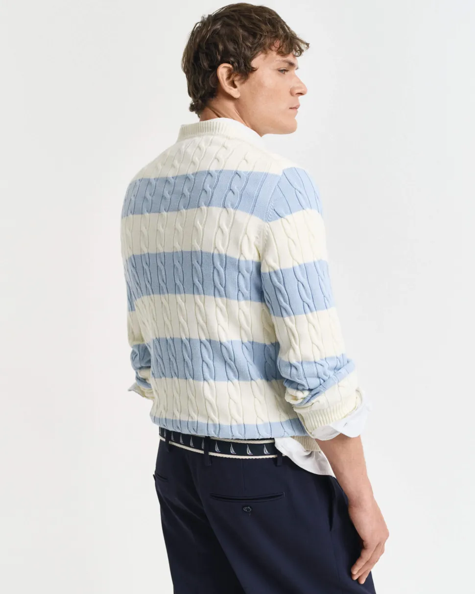 Gant naisten lyhythihainen neulepusero, STRETCH COTTON CABLE SS C-NECK Vaaleansininen