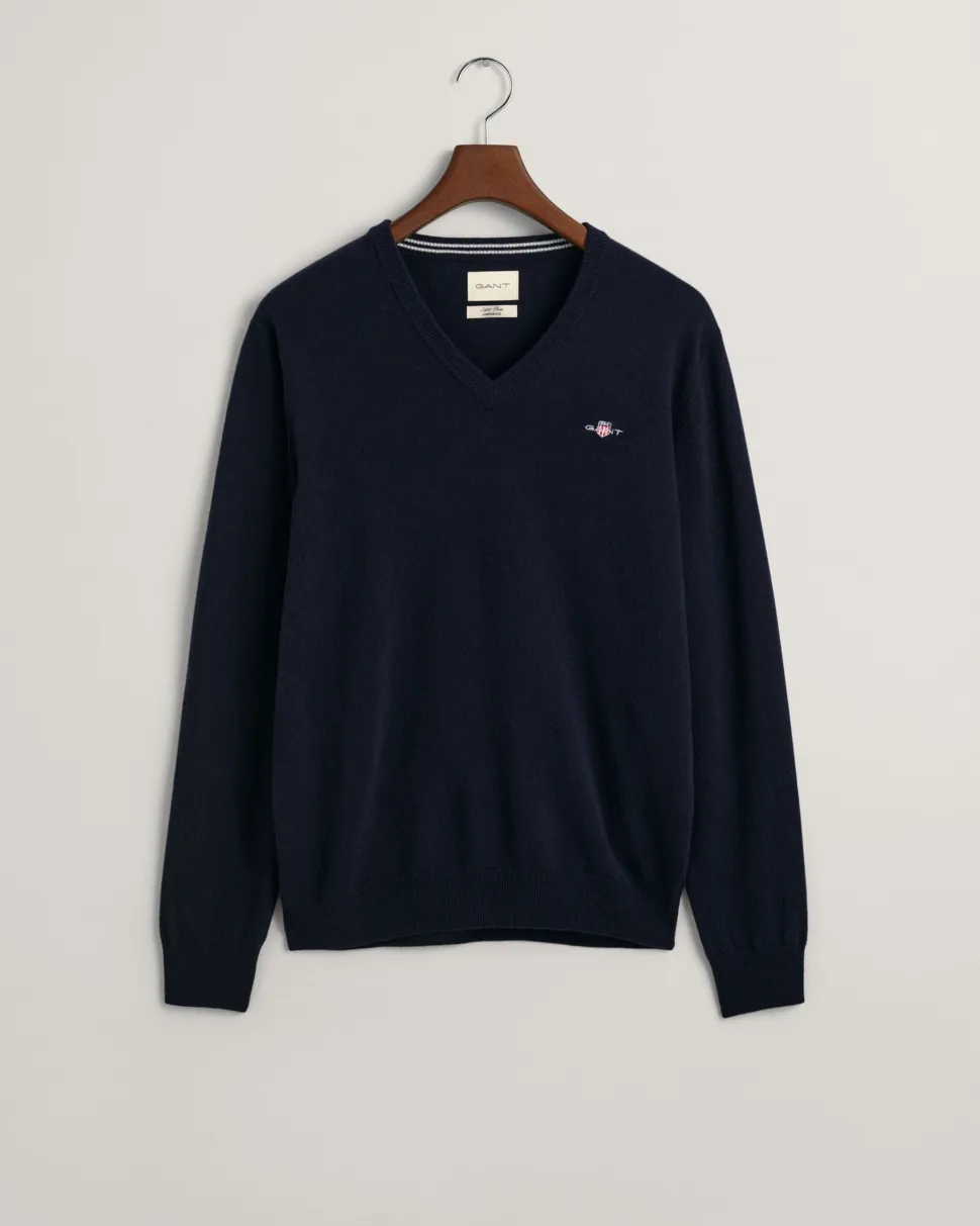 Regular fit -mitoitus V‑pääntie Hihansuu- ja helmaresorit Rinnassa kirjailtu GANT-kuvio