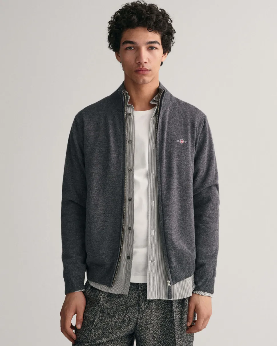 Indigo Cotton Structure Crewneck -neuletakki, jossa on GANT-brodeerattu merkki helman lähellä ja resori kaulus-, helmassa ja hihansuissa.