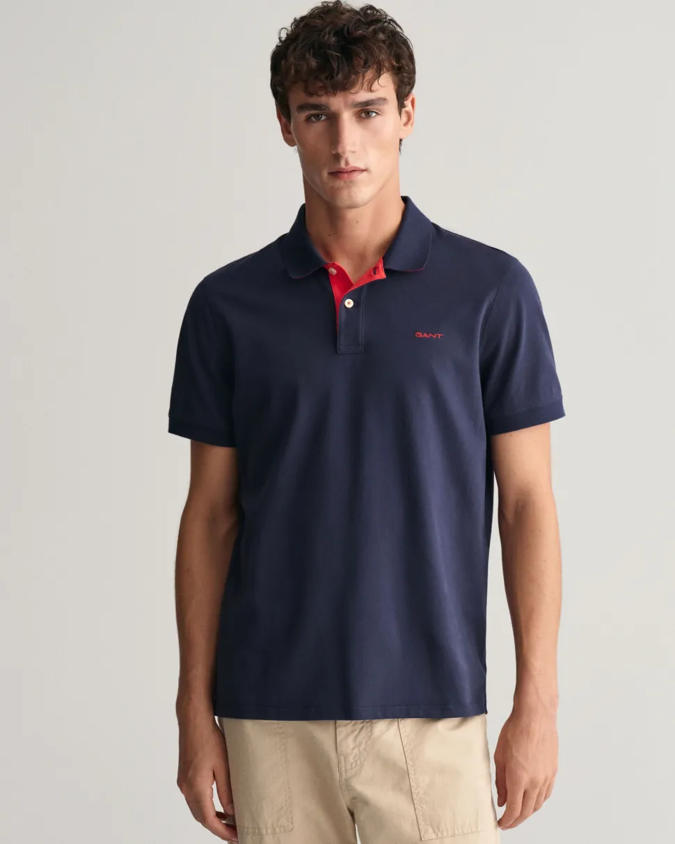 Gant miesten pehmeä, lyhythihainen pikeepaita kontrastivärillä. Resorikauluksen alapuoli ja nappilistan sisäpuoli erivärinen. Rinnassa brodeerattu logo, helmassa sivuilla lyhyet halkiot. Regular fit.