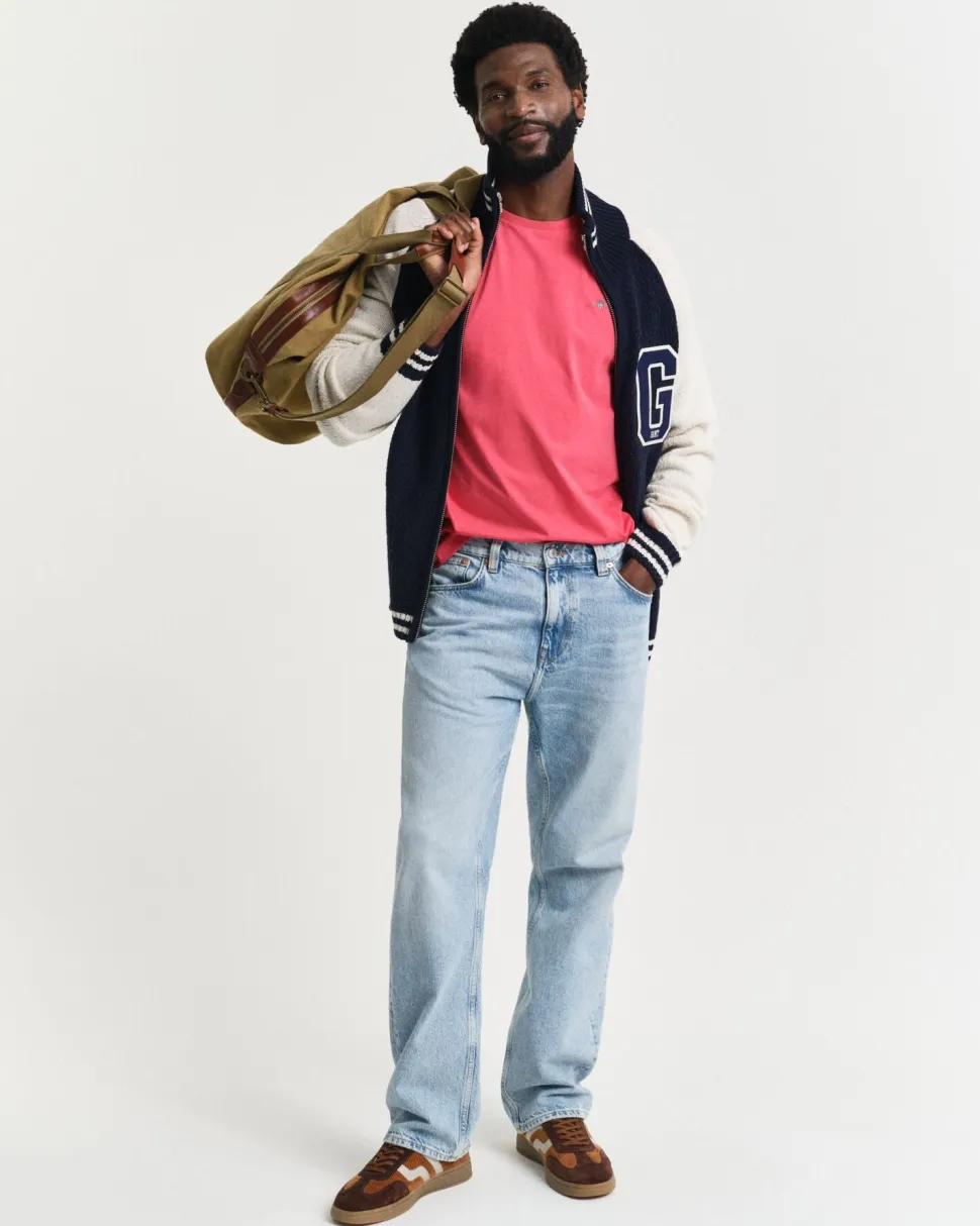 Gant naisten lyhythihainen neulepusero, STRETCH COTTON CABLE SS C-NECK Vaaleansininen