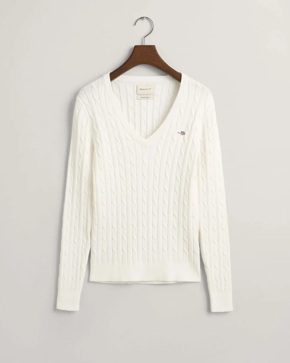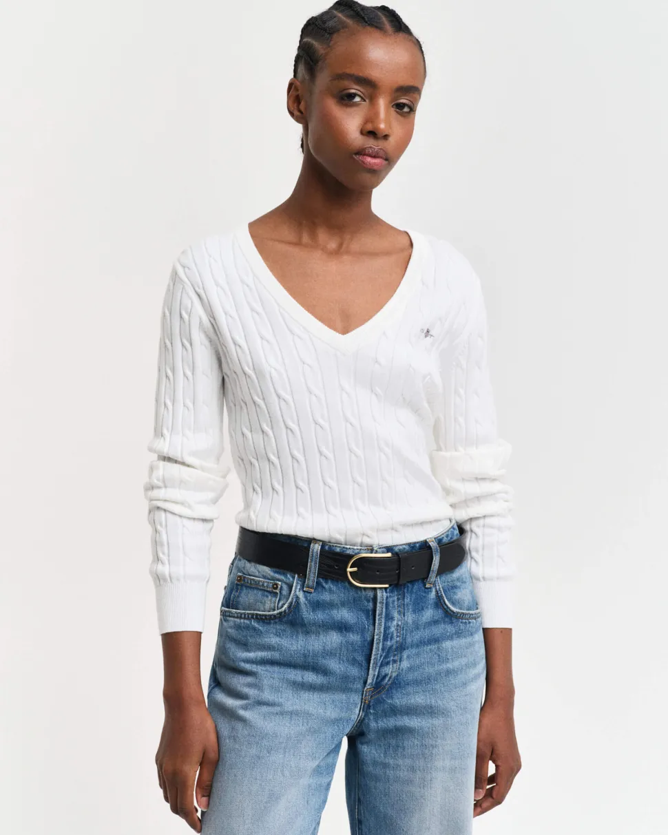 Kapea mitoitus V‑pääntie Resorit hihansuissa ja helmassa Rinnassa kirjailtu GANT-kuvio
