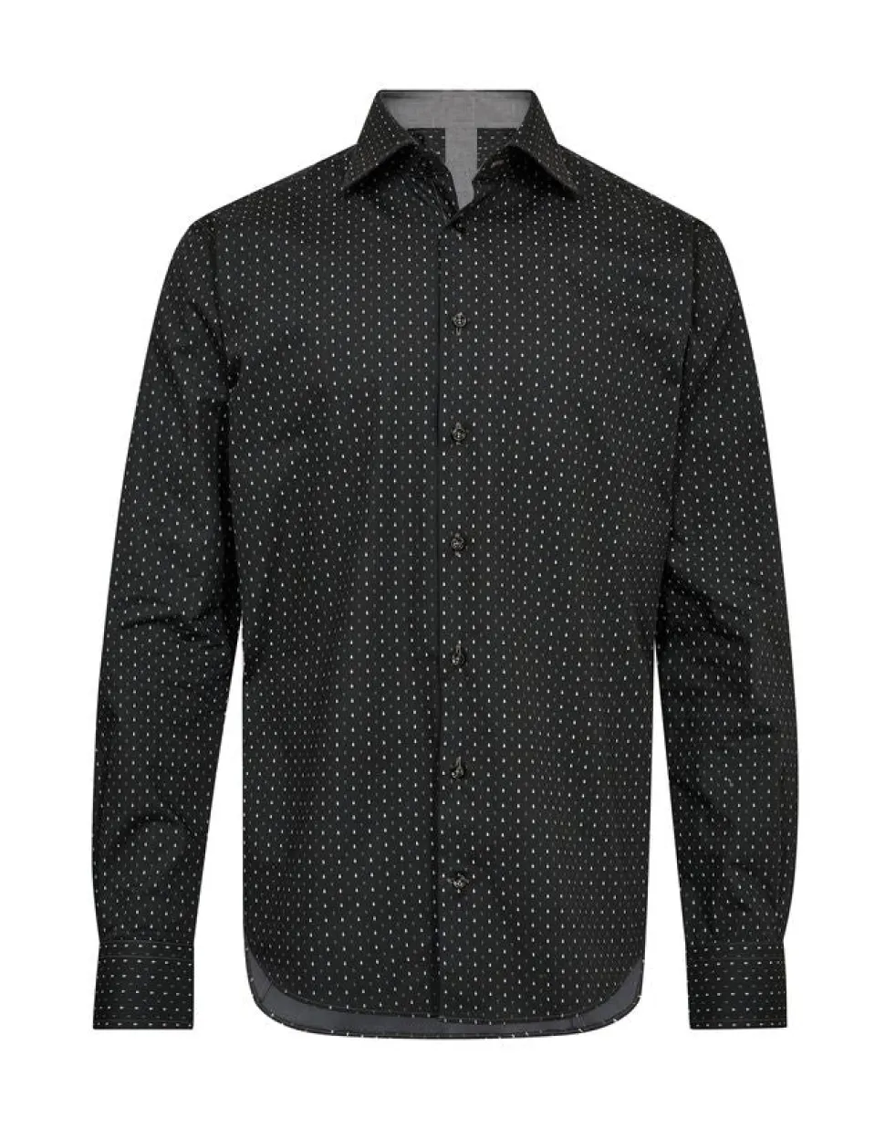 Gino Marcellon pitkähihainen paita modernilla istuvuudella. Paidassa on hienovarainen pilkullinen kuvio ja klassisia yksityiskohtia, kuten nappikiinnitys ja kaulus. Tyylikäs valinta, joka sopii täydellisesti sekä arkeen että elegantteihin tilaisuuksiin.