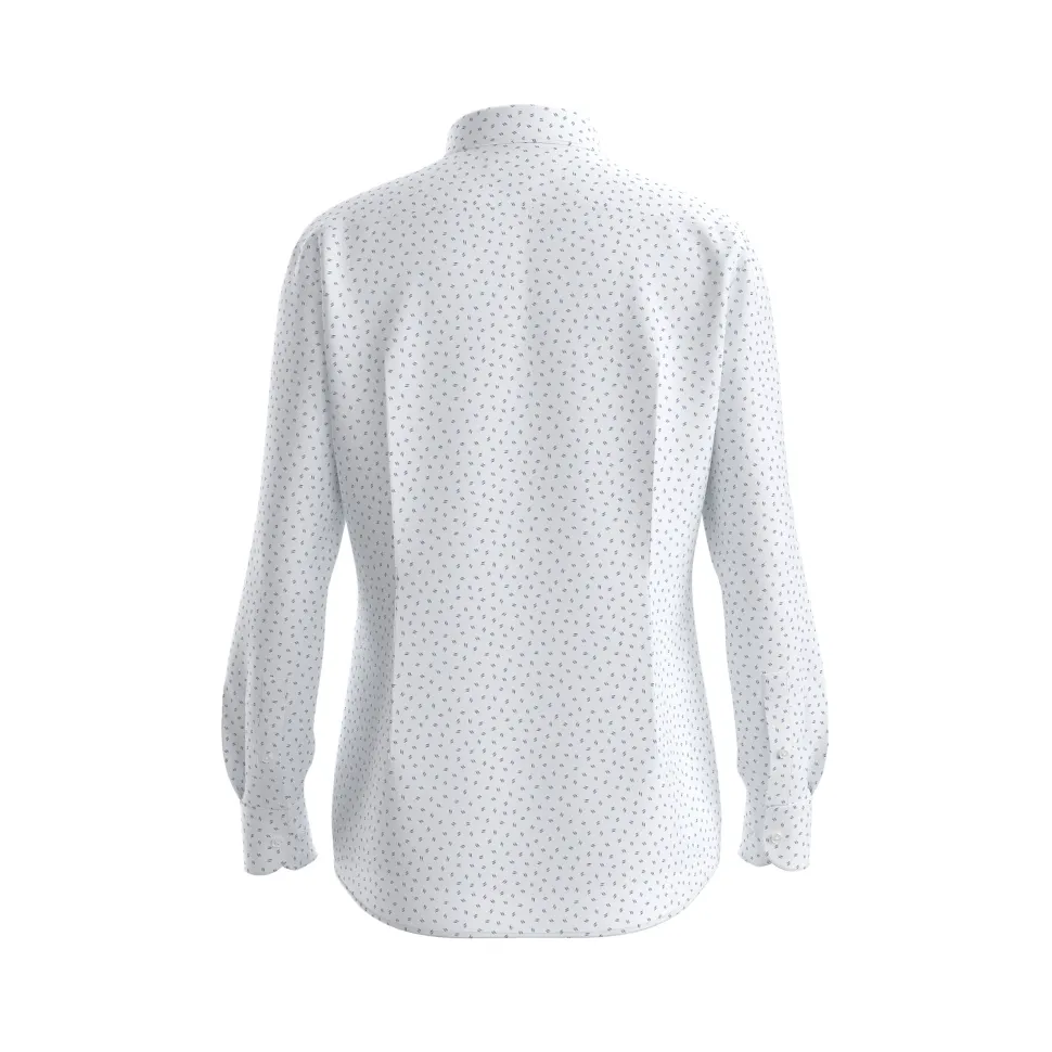 Tämä miesten Slim-fit -kauluspaita on leikattu lähelle vartaloa, minkä ansiosta se luo siistin ja nykyaikaisen ilmeen. Kent-kaulus ja pyöreät hihansuut antavat paidalle klassisen liikepukeutumisen eleganssin