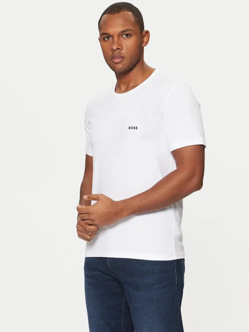 Miesten klassinen t-paita, joka on valmistettu pehmeästä puuvillasta. Normaali istuvuus, pyöreä pääntie ja logo rinnassa.