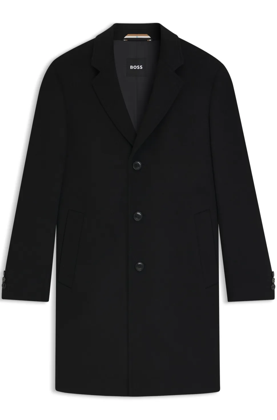 Tässä BOSS Menswear -takissa on kevyt vanu lisälämpöä varten, ja se on helppo pukea kerrospukeutumaan muodollisen asun päälle. Valmistettu villapitoisesta sekoituksesta.