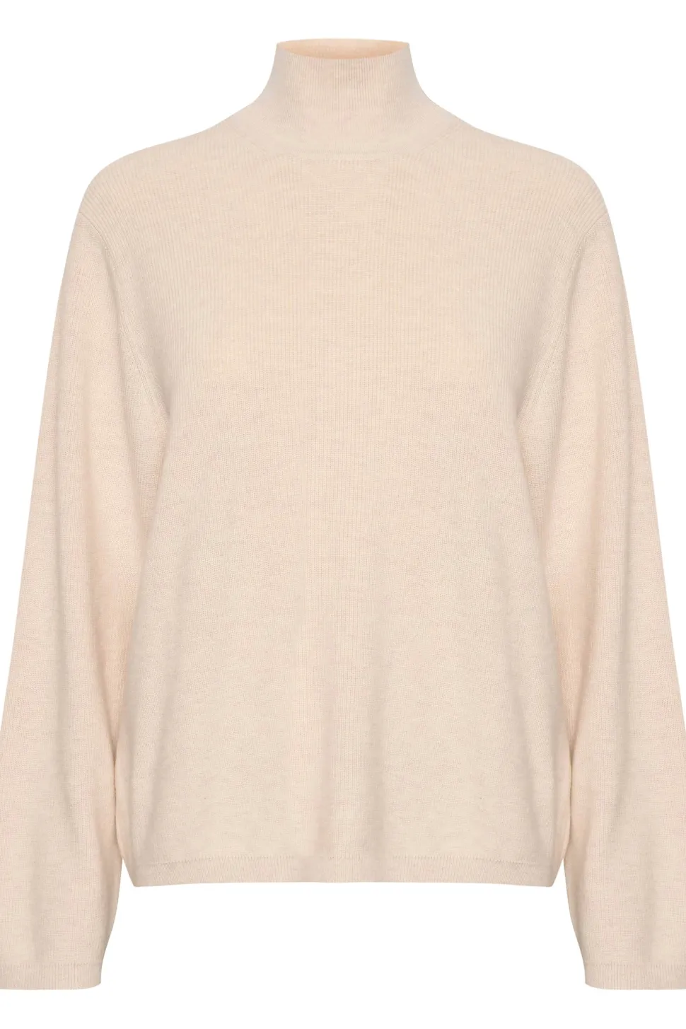 Tyylikäs naisten neule, jossa upea avoin selkähalkio ja tyylikäs poolokaulus.