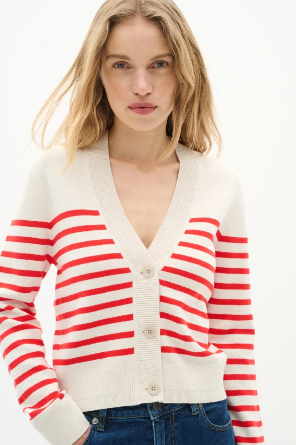 InWearin raidallinen neuletakki 100 % puuvillaa. Kevyt ja hengittävä materiaali tekee siitä täydellisen valinnan kevään ja kesän asuihin. Rento istuvuus ja nappikiinnitys edessä. Helppo yhdistää arki- ja vapaa-ajan tyyliin.