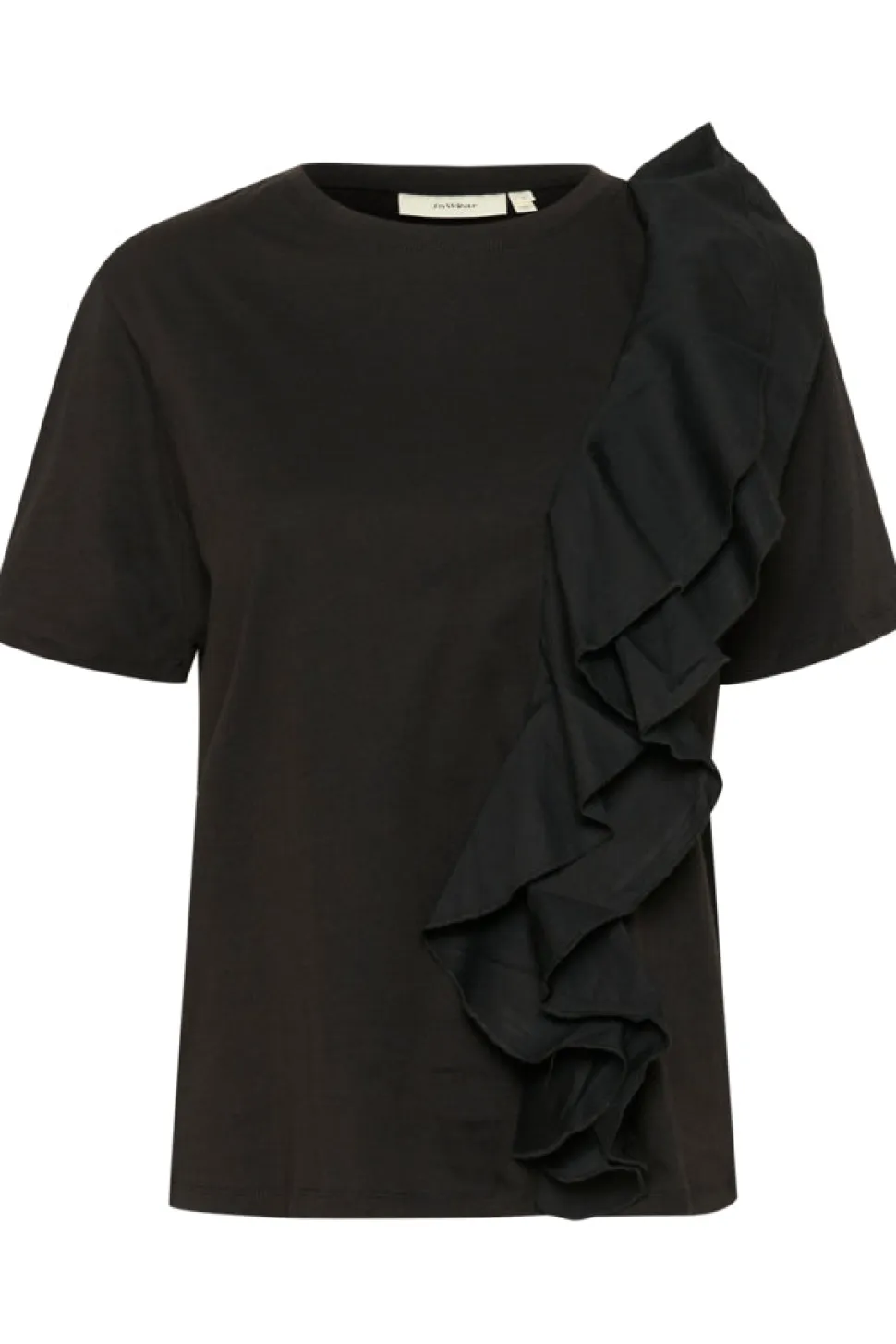 Tässä puuvillat-paidassa on rohkeita röyhelöitä, jotka lisäävät eleganssia mihin tahansa asuun. Täydellinen muodikas henkilö, joka haluaa antaa julkilausuman.