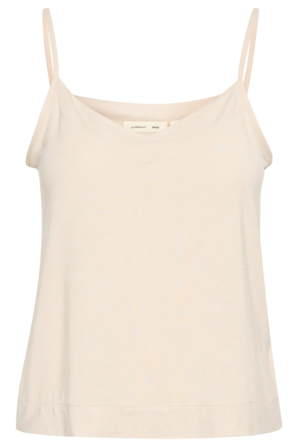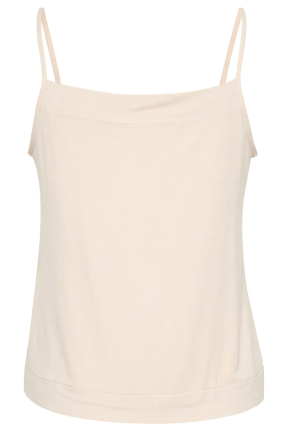 Narutoppi jossa on suora ja hieman löysä istuvuus, hillitty v-pääntie ja ohuet säädettävät olkaimet. Sileä ja pehmeä viimeistely takaa puhtaan ja minimalistisen tyylin. Näkyvien yksityiskohtien puuttuminen luo ajattoman ja monipuolisen siluetin.