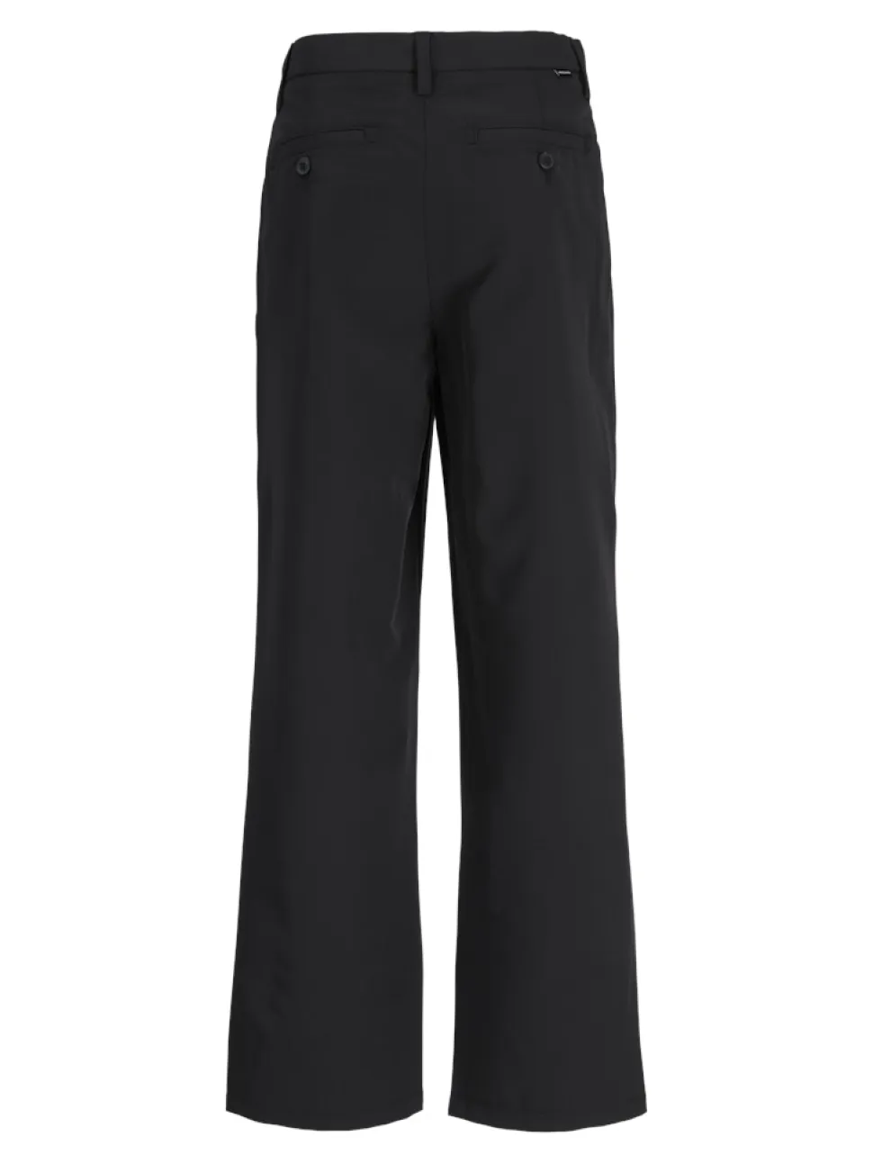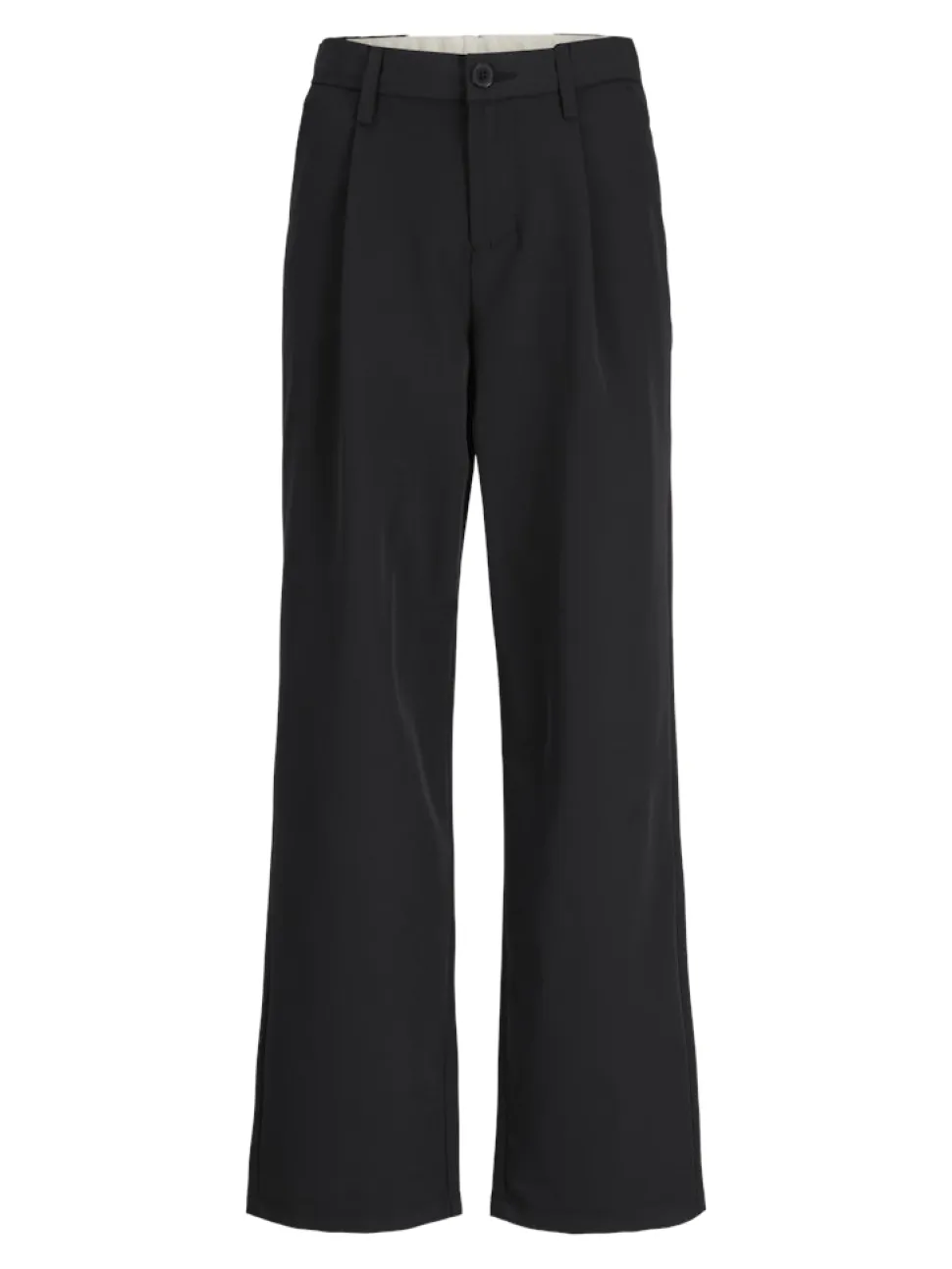 Jack & Jones Junior Wide Leg Fit Junior Chinos ovat rennot housut leveilla lahkeilla sekä korkealla vyötäröllä. Housuissa on vetoketjukiinnitys ja takana valetasku, ja ne on suunniteltu 8–16 vuotiaille pojille tyylikkääksi vaihtoehdoksi farkuille. Materiaali on kudottua, kestävästä seoksesta, jotta housut säilyvät muodossaan.