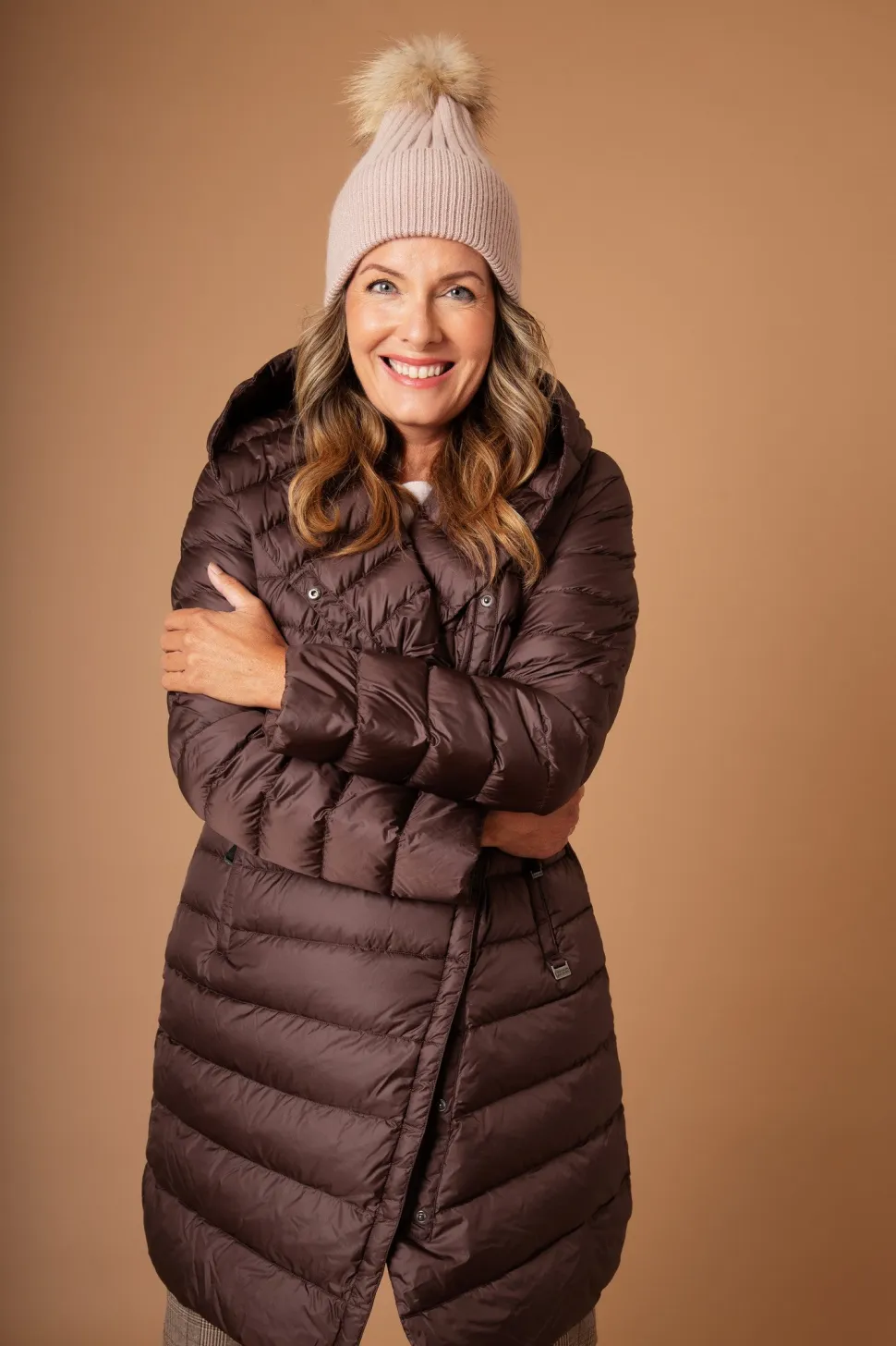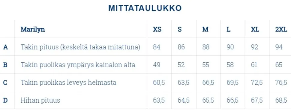 Lämmin kevytuntuvatakki. Vino nepparikiinnitys, hieman muotoonommeltu. Neljä vetoketjullista taskua ja sisätaskussa säilytyspussa.