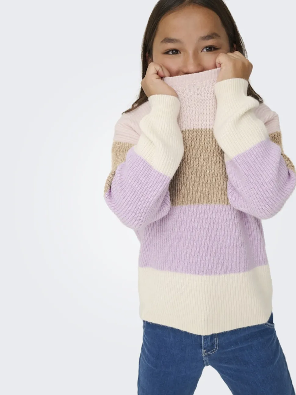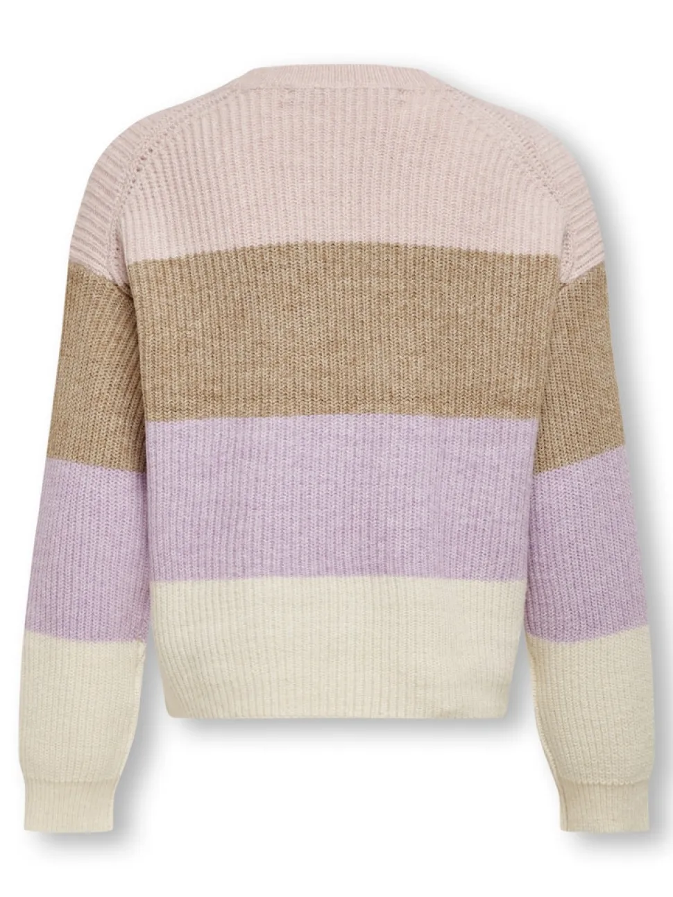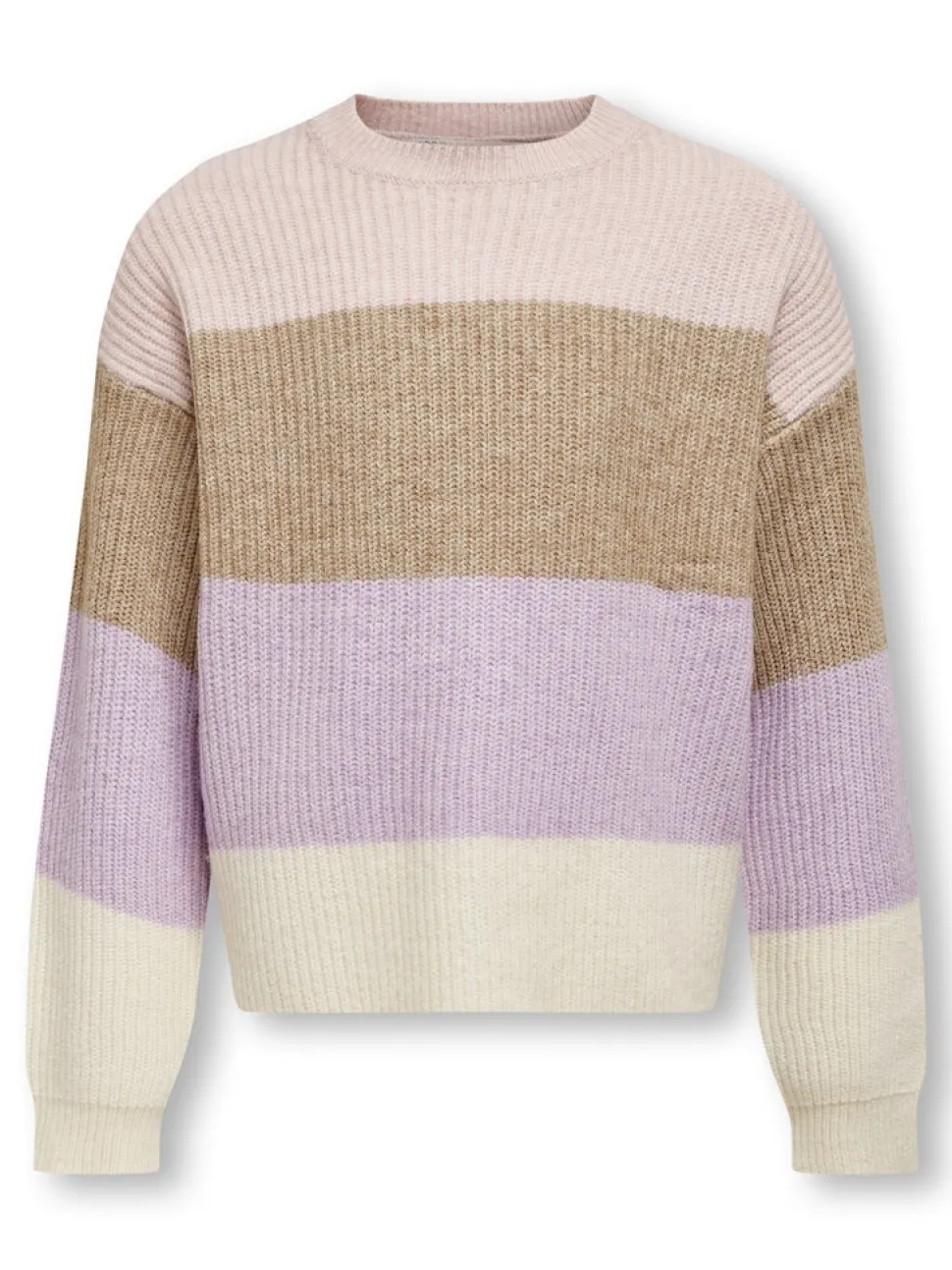 Kids Only tyttöjen raidallinen neulepusero kauniilla värityksillä. Pyöreä kaula-aukko ja pitkät hihat.
