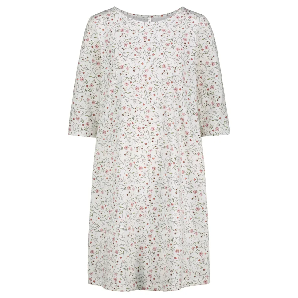 Klementin ihanan pehmeässä yöpaidassa on rennon väljä istuvuus, reilu pyöreä pääntie ja 3/4 -pituiset hihat. Mukavan väljä malli ja pehmeä materiaali saavat yöpaidan laskeutumaan miellyttävästi ja tuntumaan mukavalta päällä. Kankaassa on suloinen kukkakuosi.