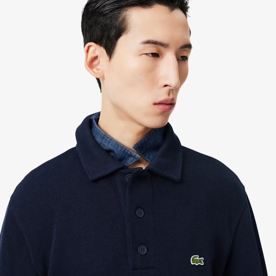 Tämä Lacosten collegepaita on täynnä brändille tunnusomaisia yksityiskohtia ja huokuu ranskalaista eleganssia, jota Lacoste on edustanut vuodesta 1933 lähtien. Paita on valmistettu pehmeästä ja miellyttävästä ribatusta interlock-puuvillaneuloksesta, ja sen viimeistellyt yksityiskohdat ammentavat inspiraationsa ikonisesta poolopaidasta. Rennon tyylikäs kokonaisuus kruunataan brodeeratulla Lacoste-krokotiililla rinnassa.