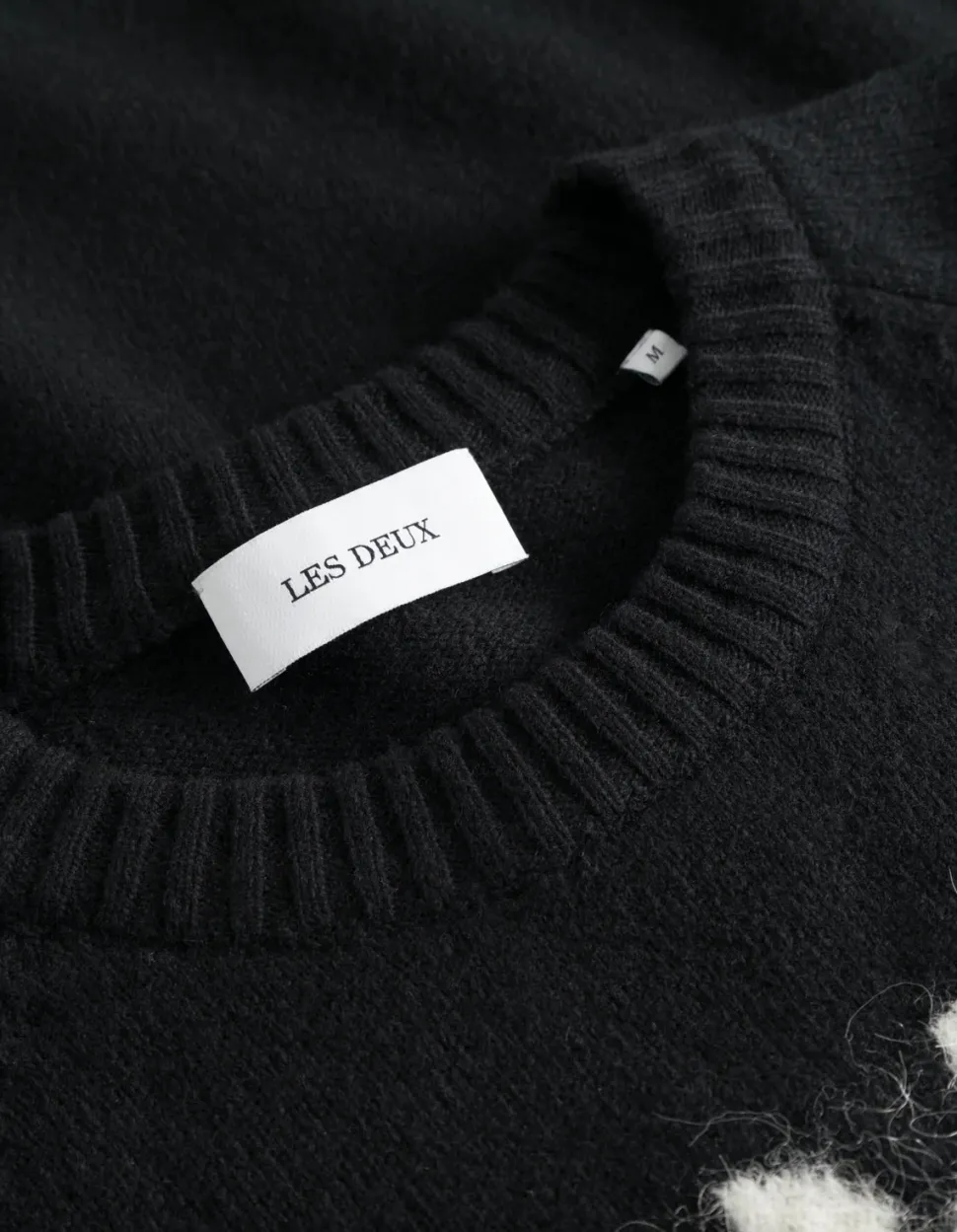 O-kaula-aukkoinen pusero pehmeää villaa, jossa edessä logokukka