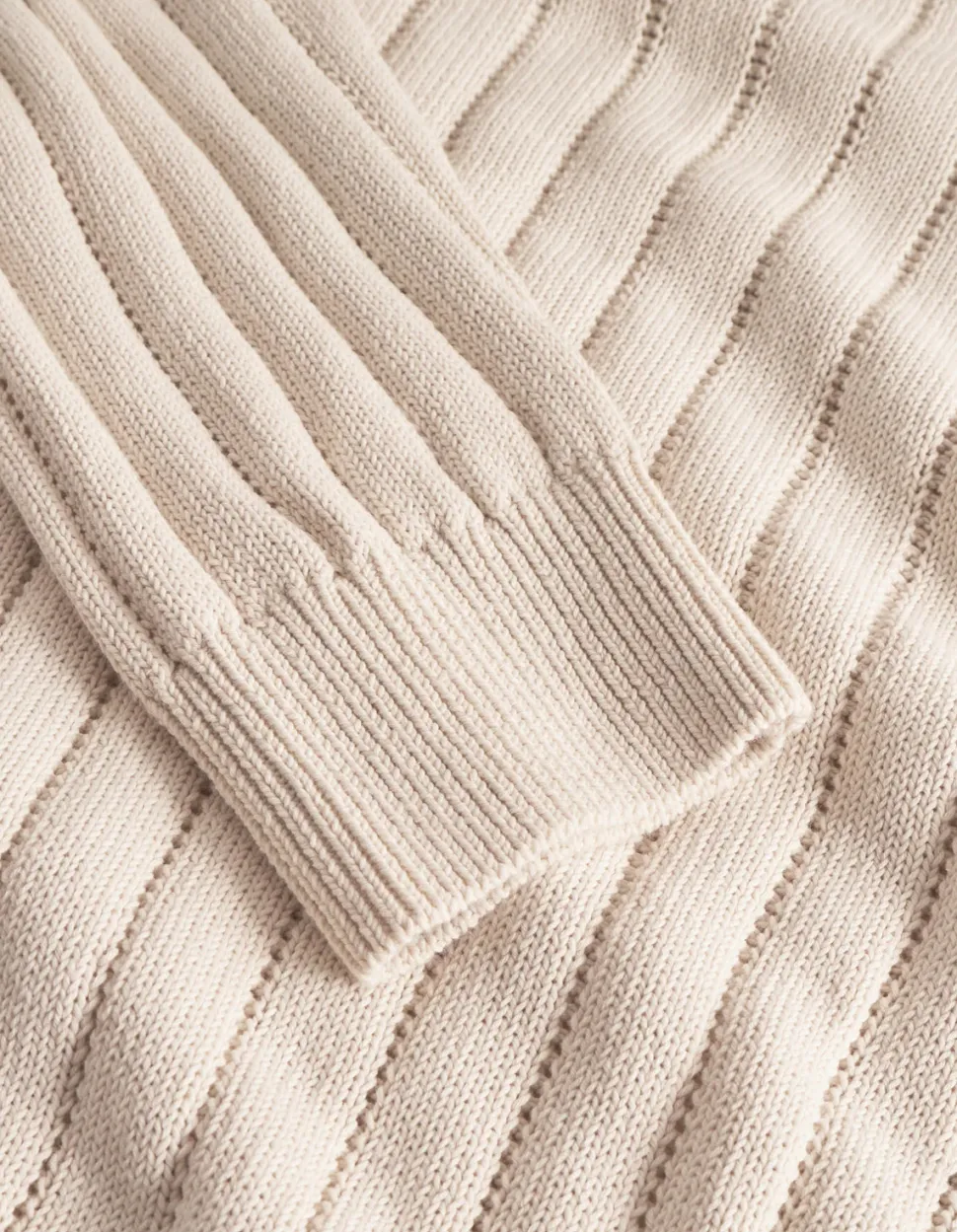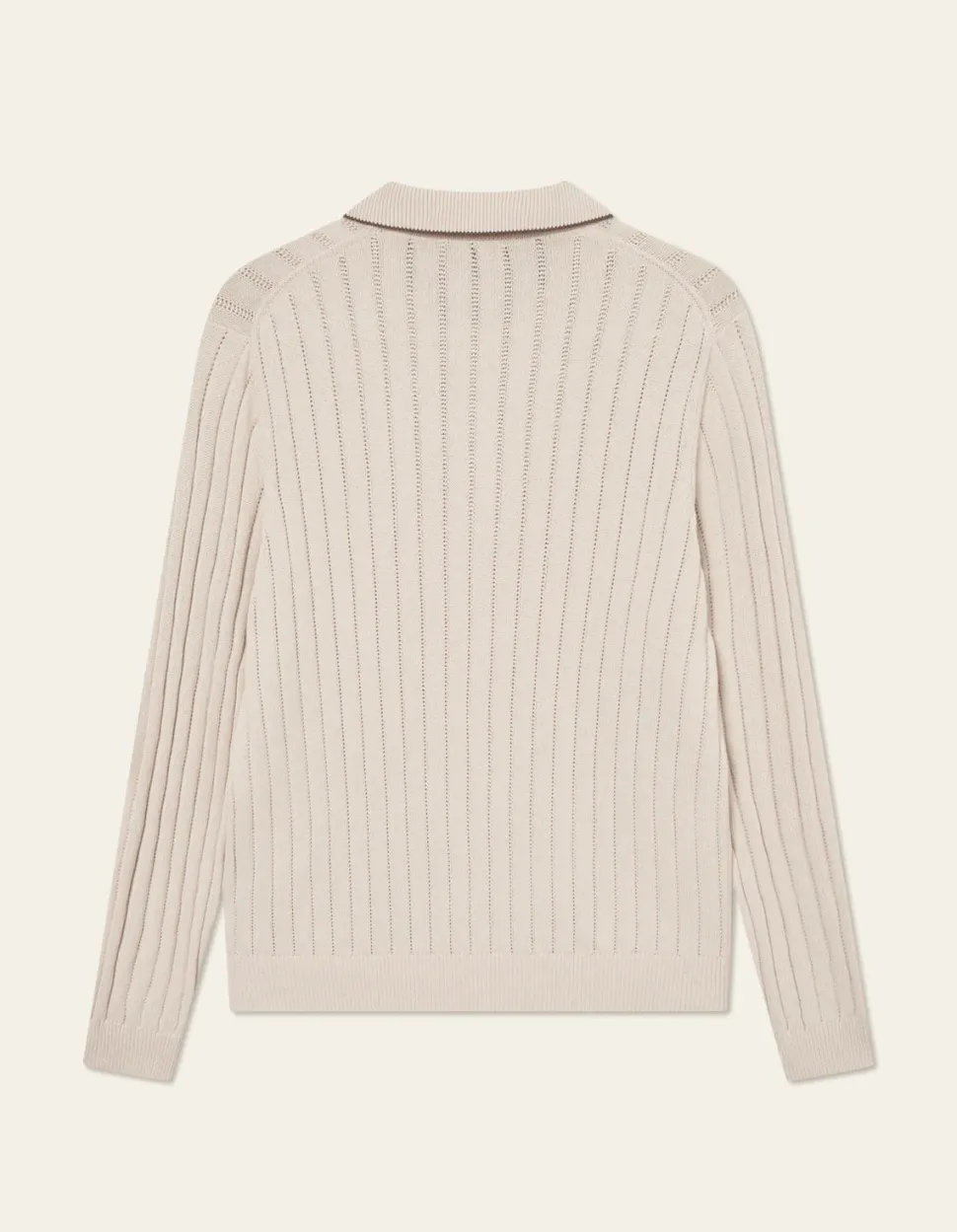 Kevyt, teksturoitu ja juuri sopiva. Bogart yhdistää arjen helppouden hienovaraiseen rakenteeseen pystysuorien raitojen ja kauluksen kontrastivärisen reunuksen ansiosta.