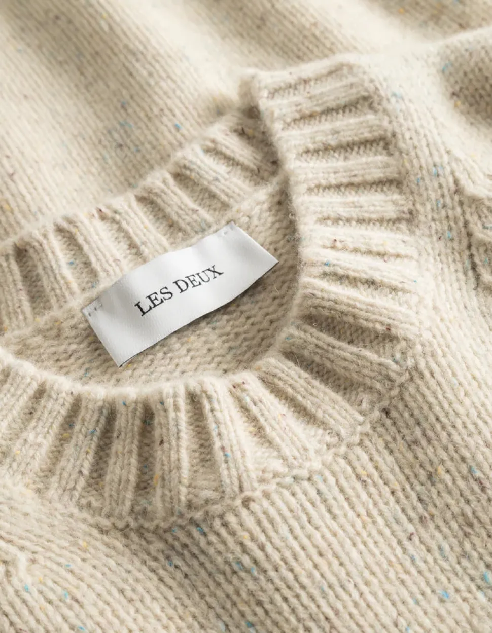 Les Deuxin mukava ja lämmin villaneule. Harjattu pehmeä pinta. Ribatut helmat ja klassinen pyöreä kaulus.