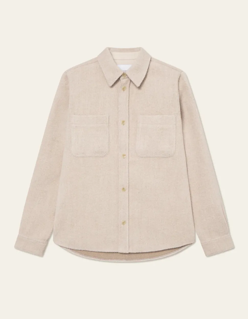 Paluu suosikki raskaasta bouclé-kankaasta. Paitatakki on helppo kerrospukeutumisvaate, jossa on teksturoitu pinta ja hieman laatikkomainen muoto.