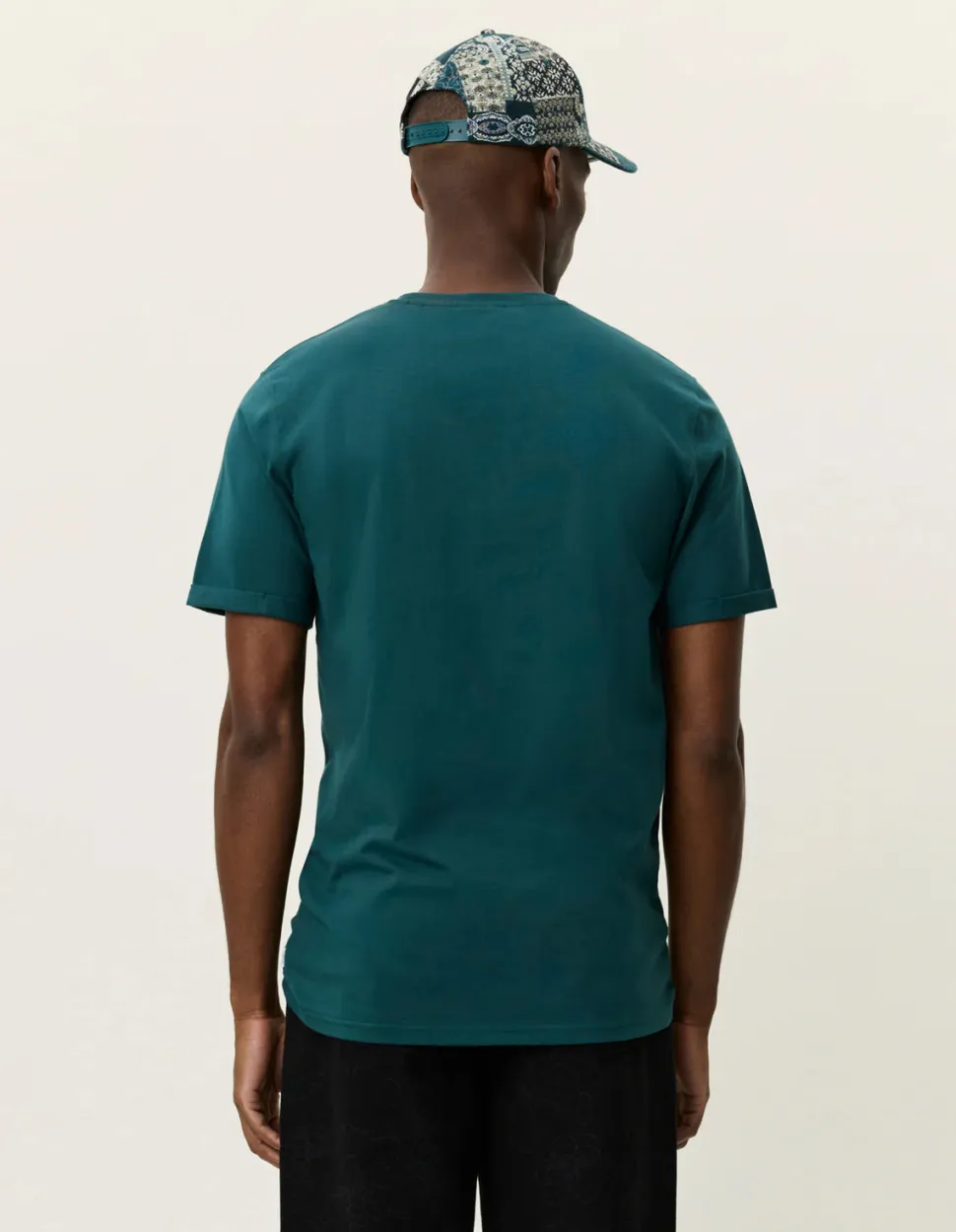 Yksi vaatekaapin kulmakivistä. Kapealinjainen T-paita on valmistettu pehmeästä luomupuuvillasta ja viimeistelty huolitelluilla, ommelluilla käännetyillä hihoilla. Rinnassa pieni, kontrastivärinen brodeerattu logo. Ajaton ja helppo valinta arkeen.
