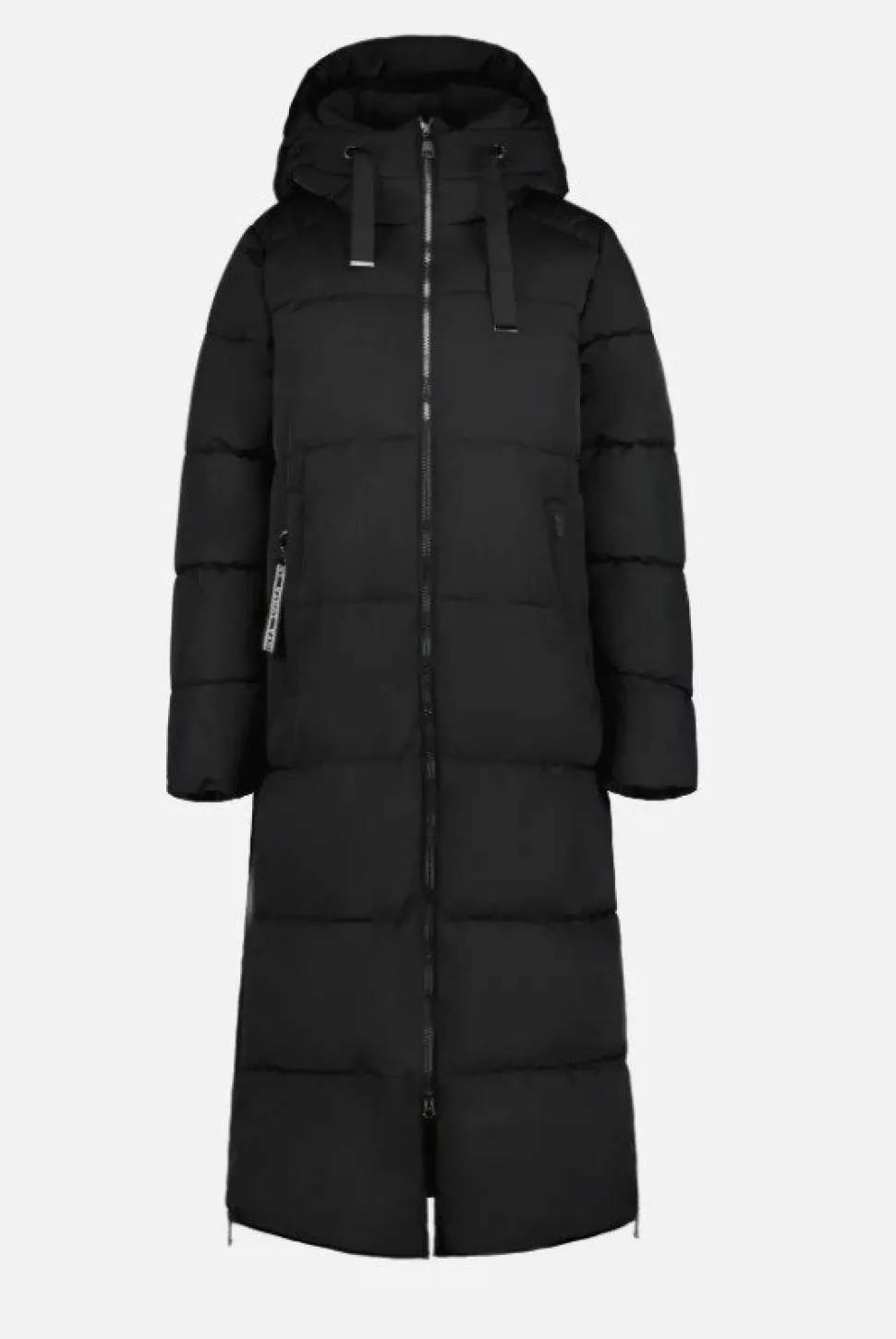 Lämmin Luhta takki, jossa on säädettävä kiinteä huppu, kaksi vetoketjullista etutaskua, vetoketjullinen sisätasku, kaksisuuntainen vetoketju edessä ja vetoketju sivulla. Kankaan pinta on käsitelty vettä hylkiväksi. Toppaus on untuvajäljitelmää, joka tarjoaa tehokkaan lämmöneristyksen, mutta tuntuu kevyeltä.