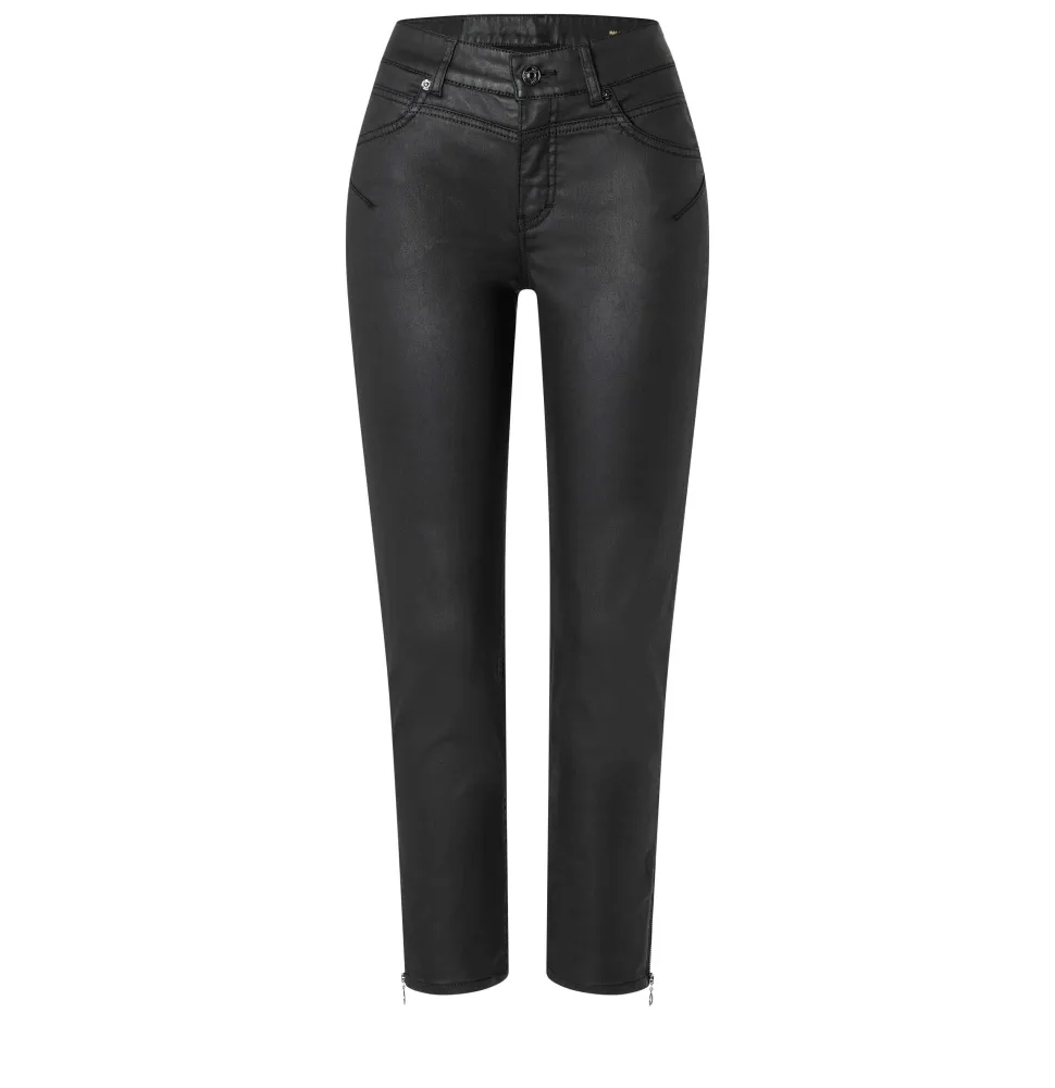 Mac naisten housut. Täydellinen yhdistelmä tyylikästä ja mukavaa: nämä housut tarjoavat kapean istuvuuden, suoralahkeisen leikkauksen ja normaalin vyötärön. Lyhennetty pituus (28″), uniikki lahkeen vetoketjuyksityiskohta sekä aito Nappa-ilme luovat trendikkään ilmeen. Päällystetty puuvilla-Lyocell-materiaali tuntuu iholla pehmeältä ja tarjoaa erinomaista käyttömukavuutta.