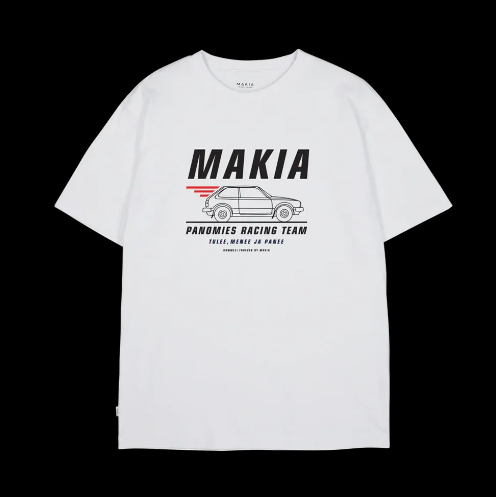 Kummeli Forever by Makia -malliston puuvillainen t-paita, jossa Racing-printti edessä. Paidassa pyöreä pääntie ja lyhyet hihat.