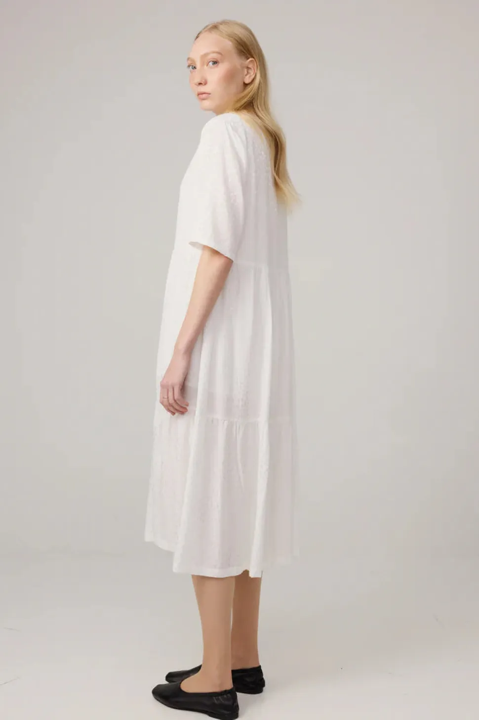 Makia Asteri Dress on naisellinen ja kevyt mekko, joka yhdistää minimalistisen skandinaavisen muotoilun ja arjen käytännöllisyyden. Mekossa on rentoutunut siluetti ja helma, joka laskeutuu kauniisti, mikä tekee siitä mukavan ja monikäyttöisen niin arkeen kuin vapaa-aikaan. Lyhyet hihat ja pyöreä pääntie tekevät mekosta helpon yhdistää kerrospukeutumisen kanssa, esimerkiksi neuletakin tai takin kanssa. Pehmeä ja hengittävä materiaali takaa miellyttävän käyttökokemuksen, ja hillitty design tekee mekosta ajattoman lisän vaatekaappiin.
