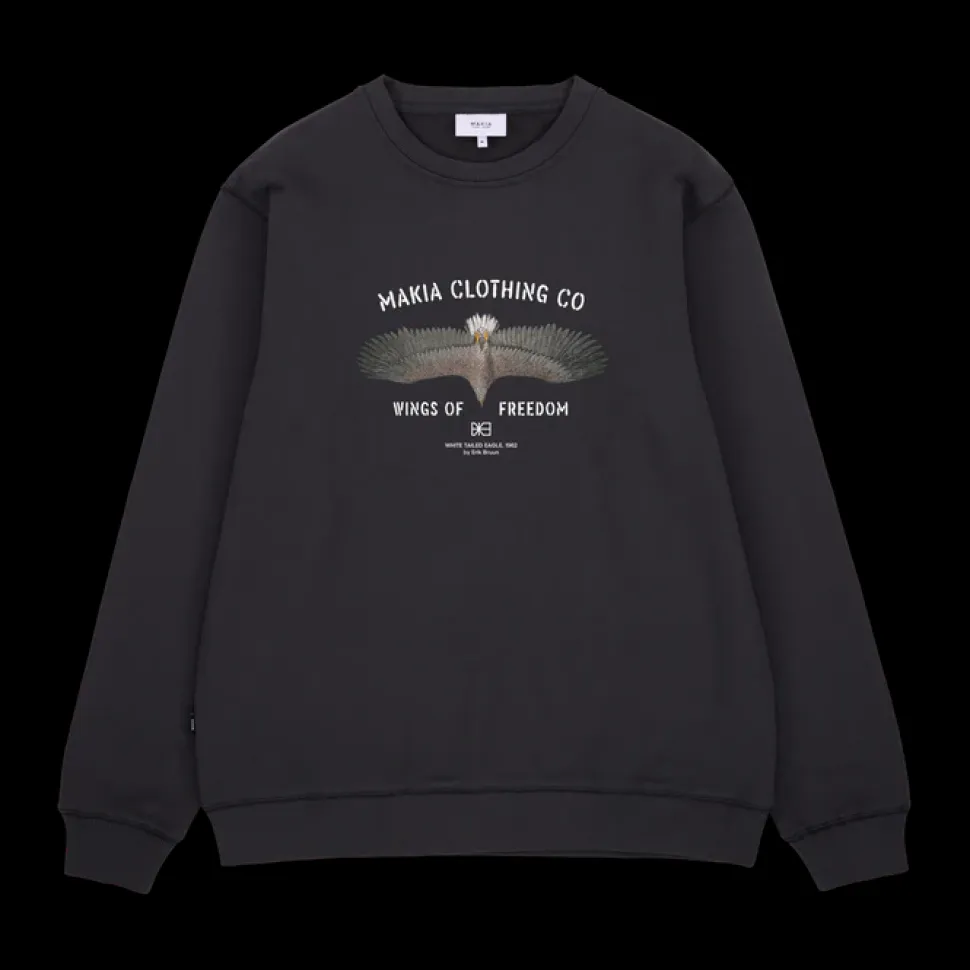 Makia Eagle Sweatshirt on klassinen ja laadukas miesten collegepaita, joka yhdistää yksinkertaisen mutta tyylikkään muotoilun ja mukavan käyttökokemuksen. Paita kuuluu Erik Bruun -capsule-mallistoon, ja sen hillitty design sopii arkeen ja vapaa-ajan asuihin. Collegepaidassa on regular fit -leikkaus, pyöreä pääntie sekä resorit hihoissa ja helmassa, jotka antavat mukavan istuvuuden ja viimeistellyn siluetin. Pehmeä ja hengittävä materiaalikoostumus tekee siitä miellyttävän käyttää niin yksinään kuin kerrospukeutumisessa. Laadukas brodeerattu tai painettu grafiikka rinnassa antaa paidalle persoonallisen ilmeen.