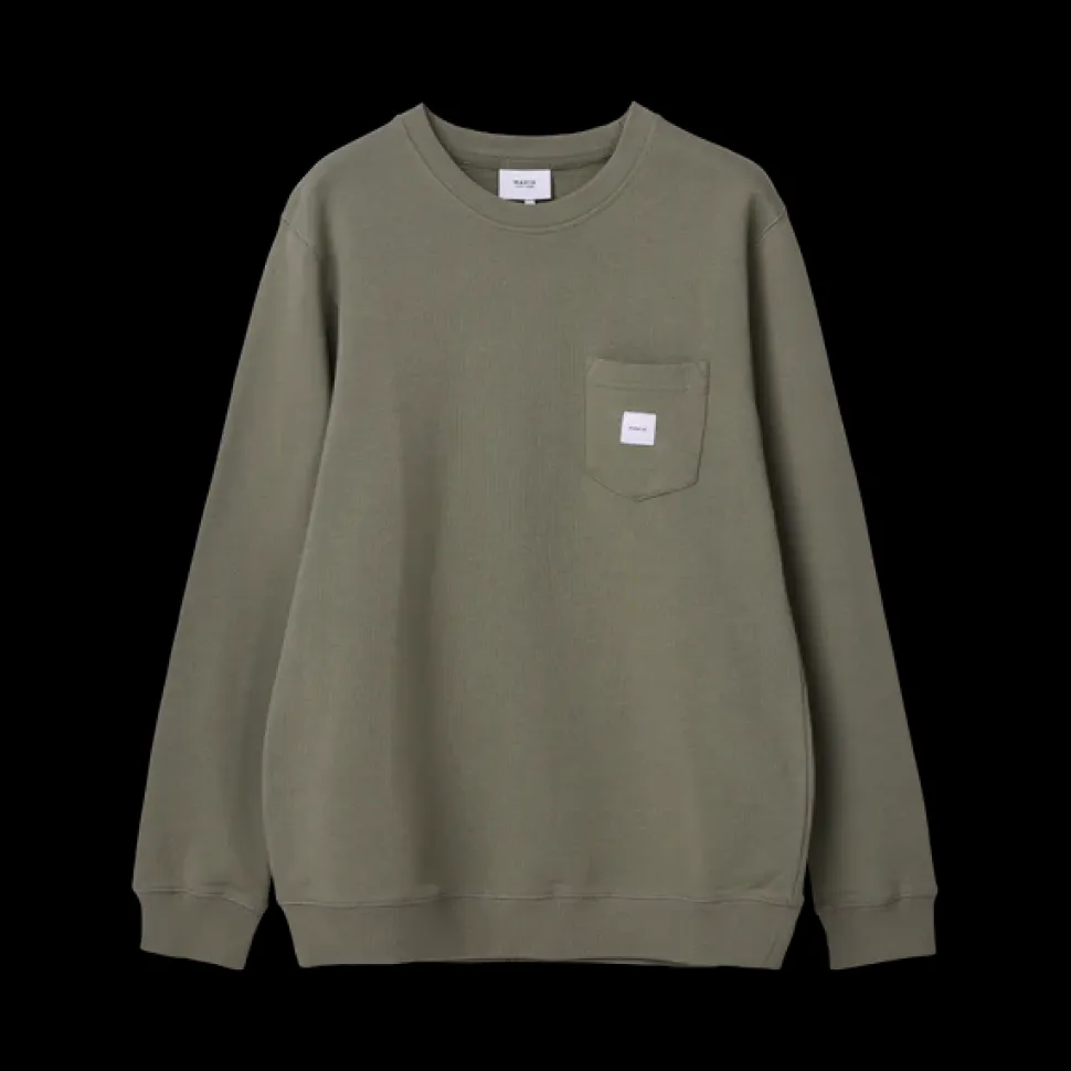Miesten pitkähihainen collegepaita. Rinnassa pieni tasku ja siinä Makia kangaslogo. Helmassa ja hihansuissa resorit..
