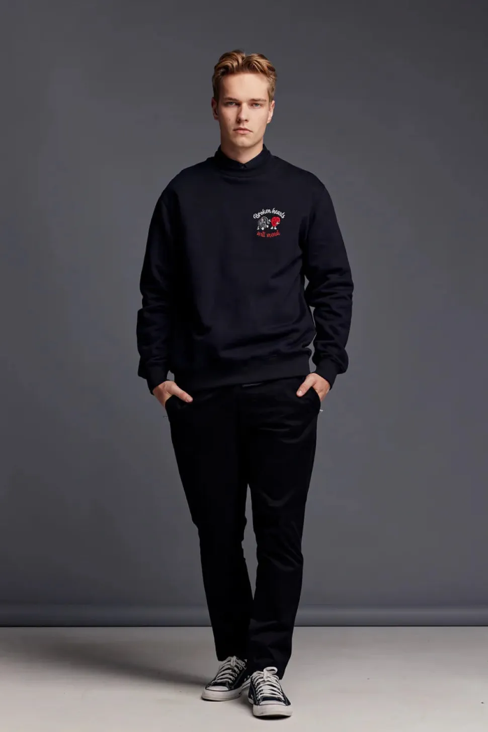 Rento istuva unisex collegepaita, jossa painatus rinnassa. • Rento istuvuus • Resori pääntiessä, hihansuussa ja helmassa • Kaikki kudotut etiketit kierrätetystä polyesterista