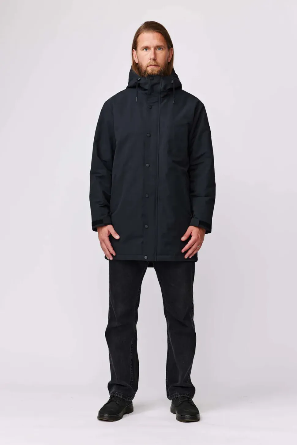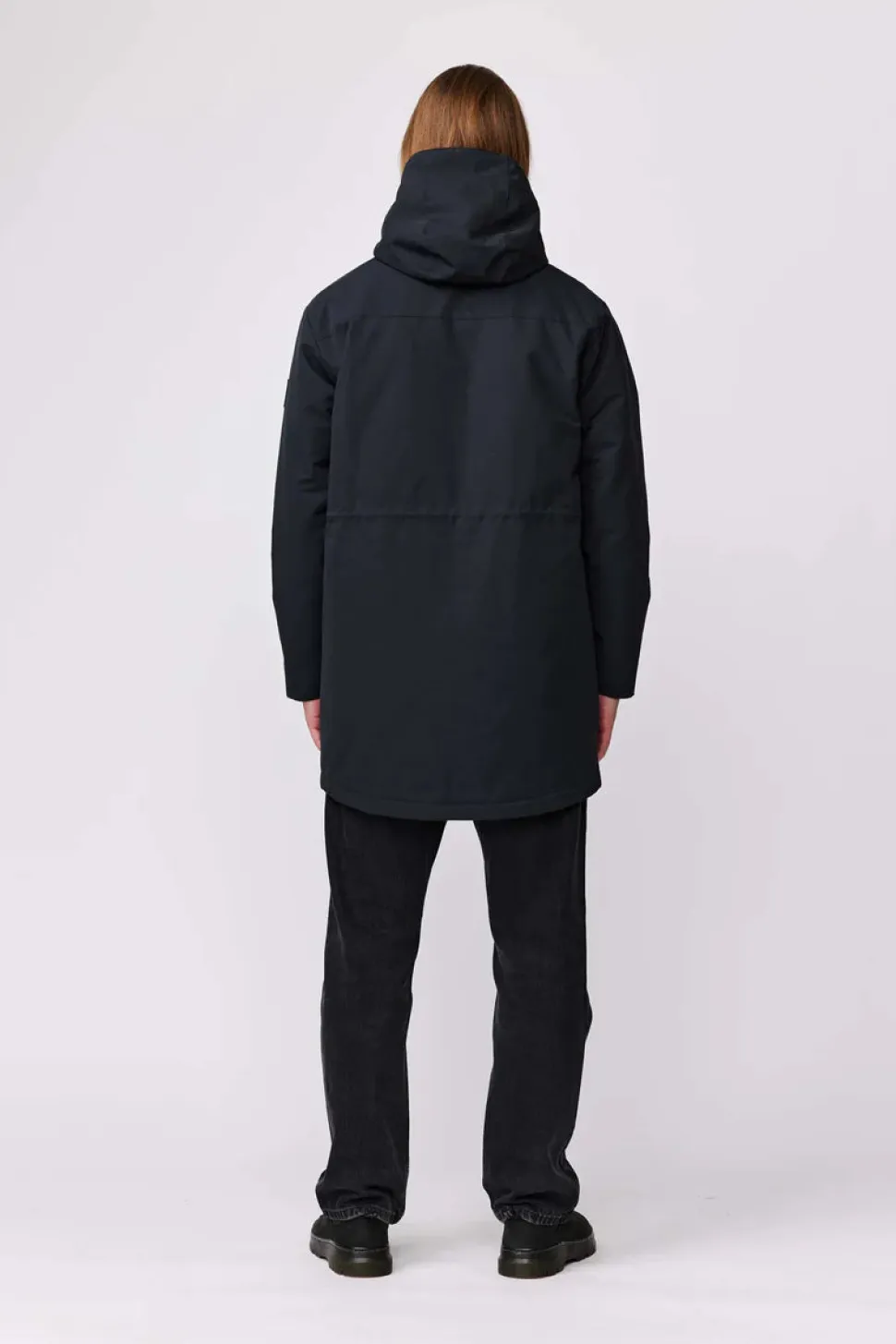 Makian tyylikäs pitkä regular fit parkatakki. – 5000mm vesipilari – Joustava säätönauha hupussa – Tarranauha hupussa ja hihansuissa – 2-suuntainen vetoketju ja painonapillinen läppä – Etutaskut YKK-vetoketjuilla ja fleecevuorilla – Sisäinen rintatasku YKK-vetoketjulla ja fleecevuorilla – Vyötärön säätönaru vuorin puolella – Brodeerattu lippulogo oikeassa hihansuussa, Makia-silikonimerkki vasemmassa hihassa, ”Through the rough seas” -brodeeraus tuulilistassa