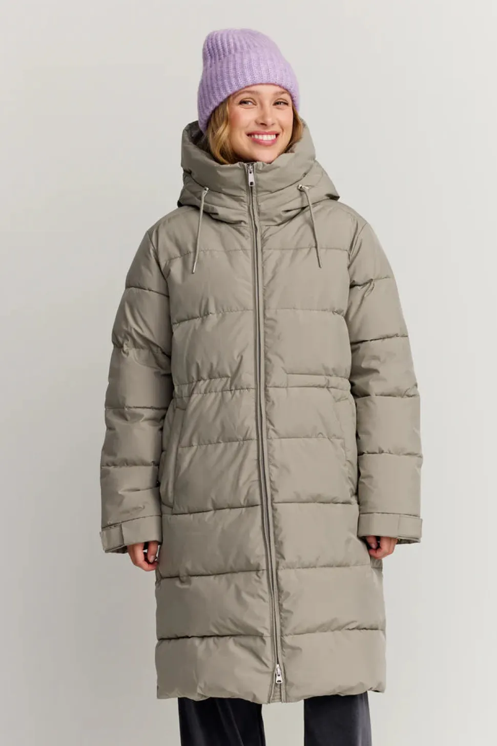 Rento puolipitkä toppatakki, joka pitää sinut lämpimänä ja mukavana. Maren Parkan vuori on valmistettu 100 % kierrätetystä Sorona®-polyesterijäljitelmästä untuvaksi. Osittain kasvipohjainen Sorona®-eristys on hengittävää ja pitää lämmön. Säädä istuvuutta tarvittaessa vyötäröllä olevalla vyötärönauhalla.