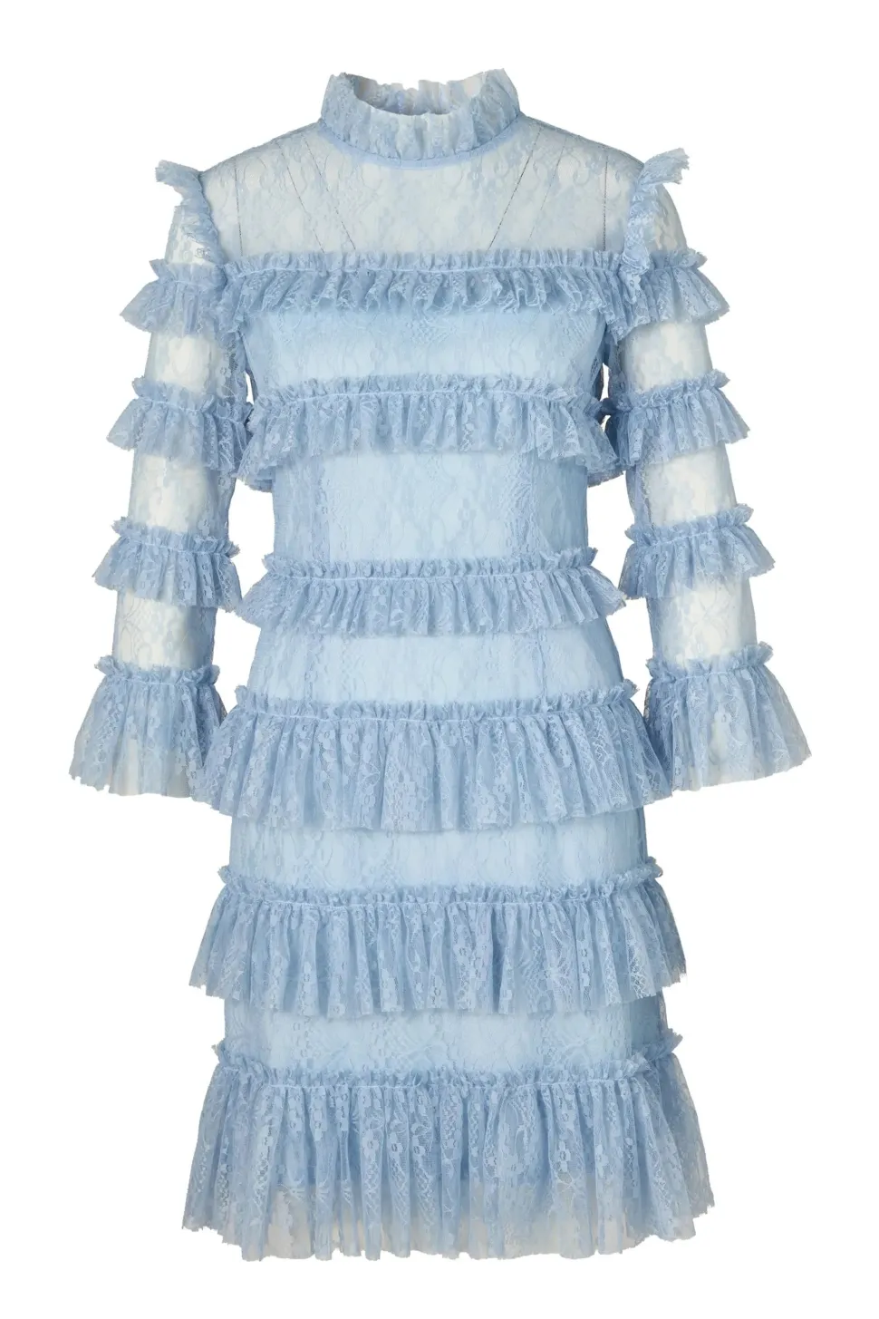 • Minimekko pitsiröyhelöllä ja kapea istuvuus