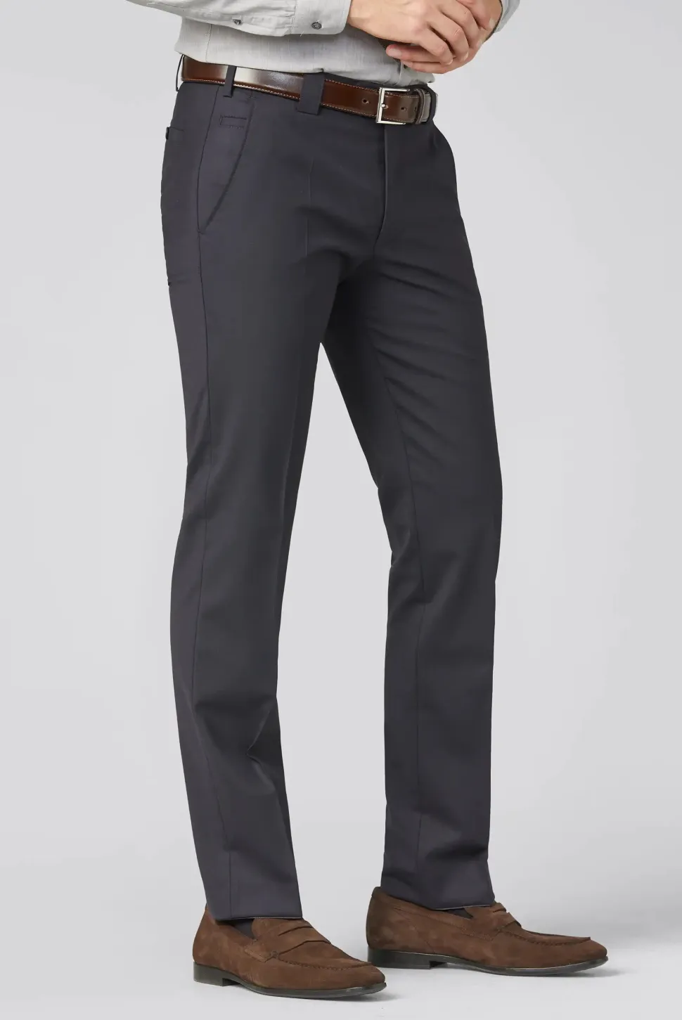 Meyer Roma on hienostunut ja monikäyttöinen housumalli, joka sopii niin bisnes‑ kuin smart casual ‑tyyliin. Huoliteltu leikkaus antaa siistin ja ajattoman ilmeen, kun taas laadukas materiaali takaa kevyen, hengittävän ja miellyttävän käyttötuntuman. Housujen materiaali pitää huolen siitä, että ne laskeutuvat kauniisti ja säilyttävät muotonsa koko päivän — olitpa toimistolla, kokouksessa tai vapaa-ajalla kaupungilla. Hyvin suunnitellut taskut, täydellisesti istuva vyötärö ja viimeistellyt saumat tekevät näistä housuista varman valinnan vaatekaappiin, jossa laatu kohtaa tyylin.