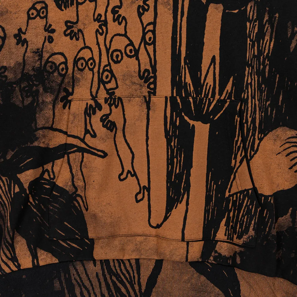 Tyylikkäästi katu-uskottava aikuisten muumiaiheinen huppari. Unifit-hupparissa on väljä huppu, kengurutasku ja pitkät hihat, joiden resoreissa on peukalonreiät. Hupparin materiaali on 100 % puuvillasta valmistettua harjaamatonta vuorineulosta. Hupparin pituus olkapäältä helmaan koossa S on 70 cm.