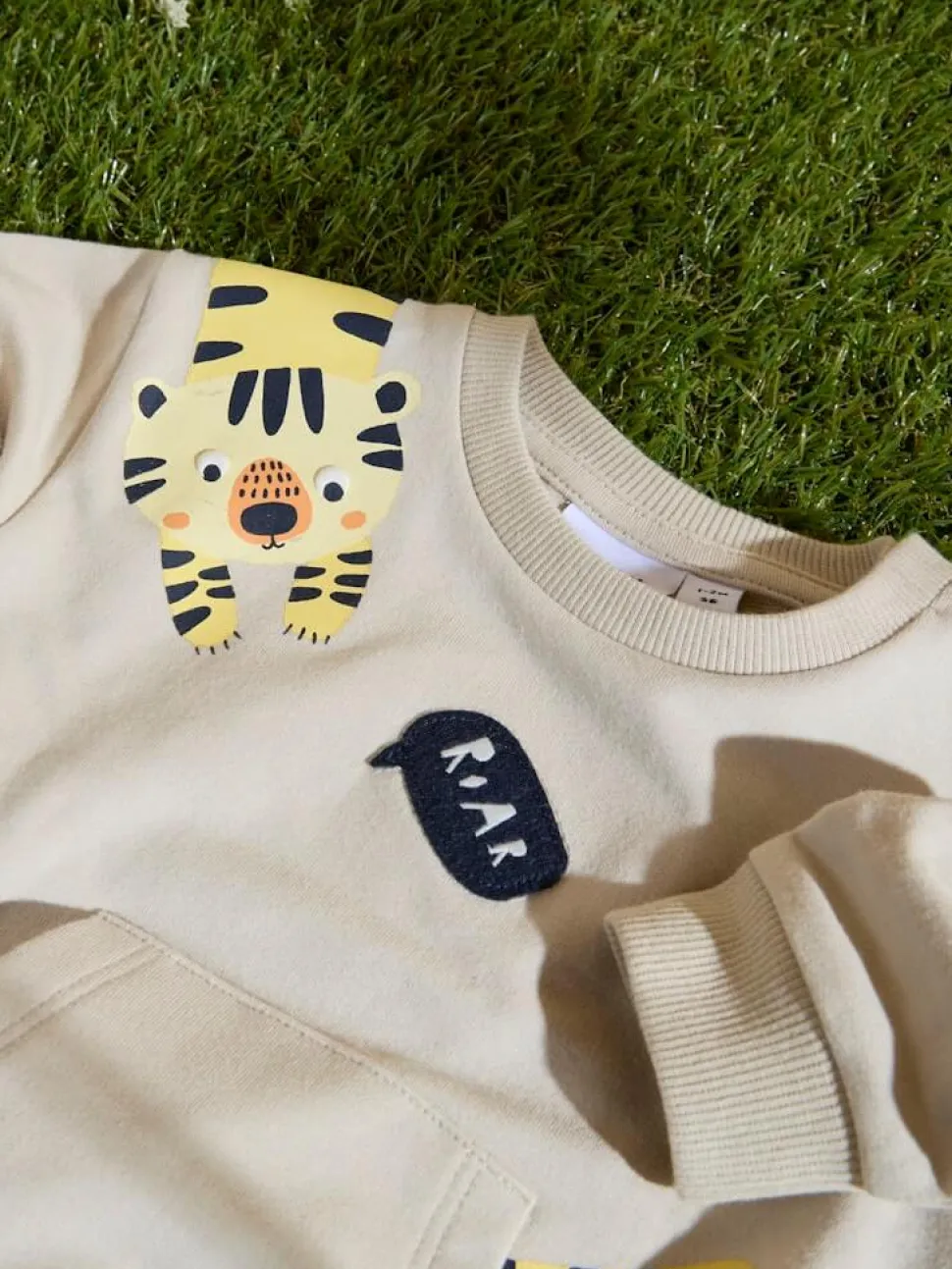 Tämä tyylikäs ja mukava beige collegepaita on suunniteltu erityisesti lapsille, tarjoten sekä käytännöllisyyttä että trendikästä ilmettä arkeen ja vapaa-aikaan.