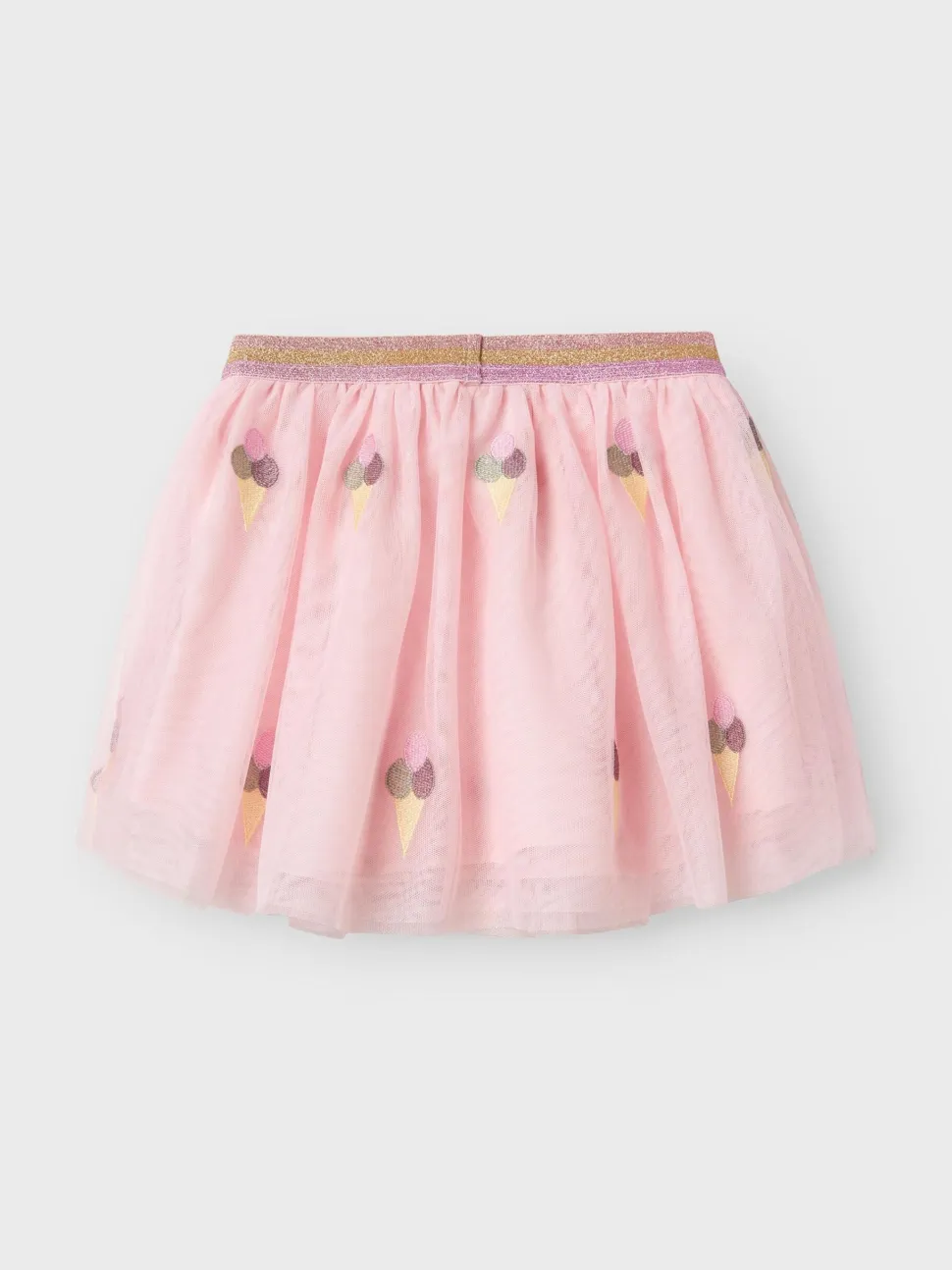 Tyllihame herkullisilla jäätelökuvioilla ja glitter vyötärönauhalla.