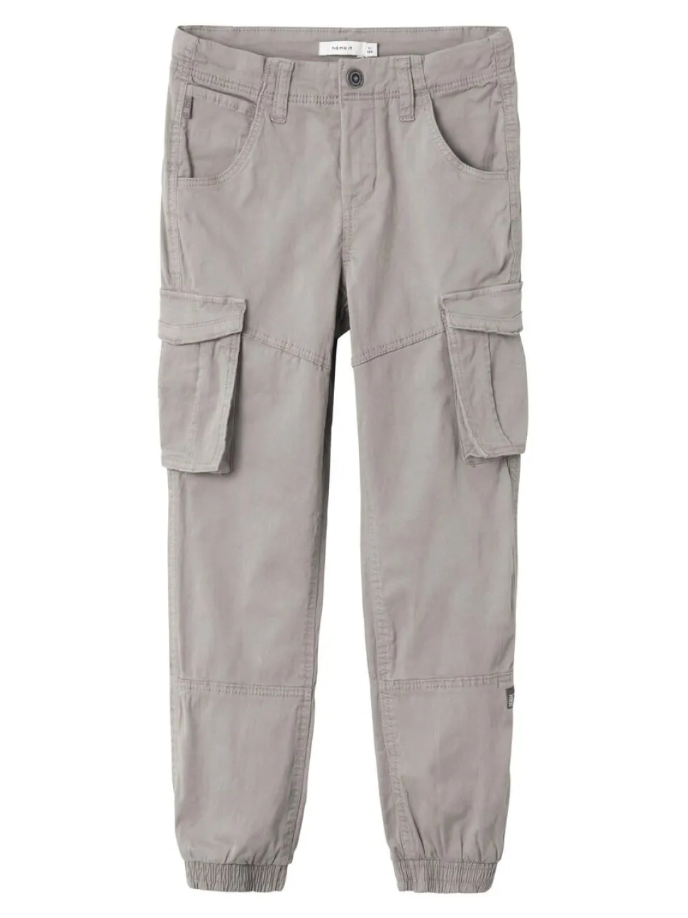 Name it rennot twillhousut. Reisitaskuissa neppariläpät ja lahkeissa kuminauhat. Takana koristetaskut.