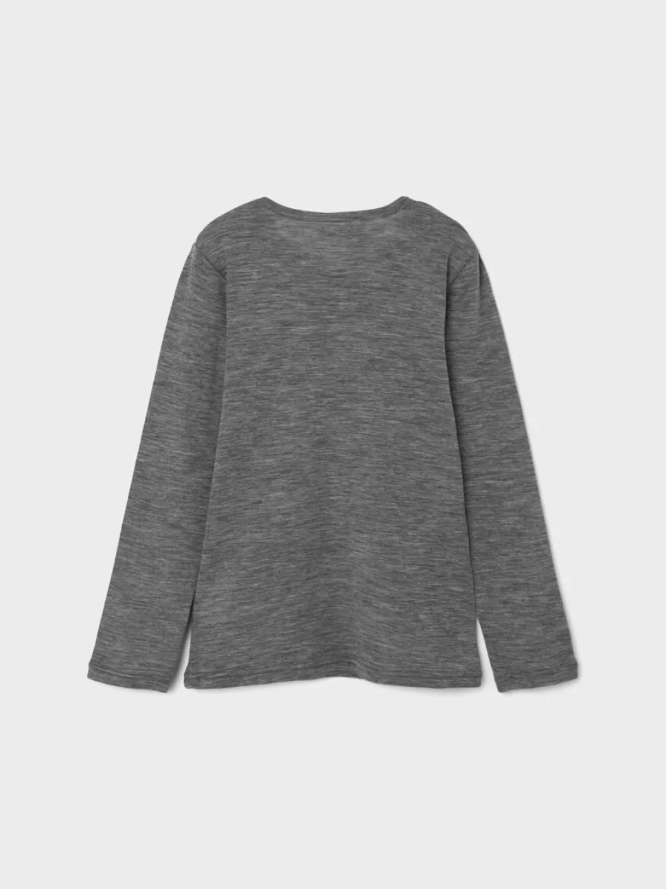 Lasten merinovillainen pitkähihainen paita, jossa pyöreä kaula-aukko. Paidassa normaali istuvuus.