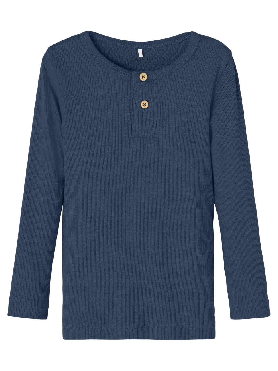 Lasten pitkähihainen trikoopaita, joka on valmistettu pehmeästä ja joustavasta luomupuuvillasekoitteesta. Pyöreä pääntie, ribneulottu pinta ja kaksi nappia edessä.