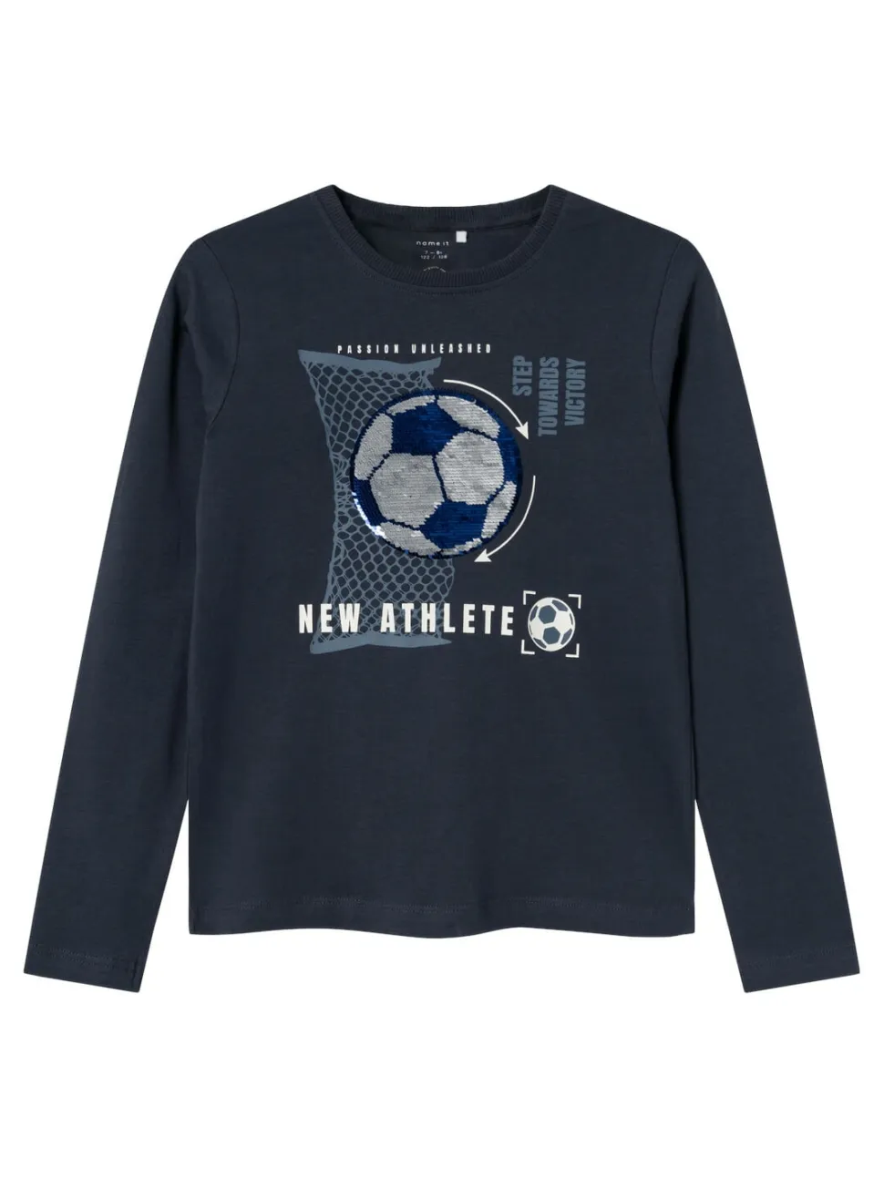 Name Itin jalkapalloteemainen pitkähihainen paita.