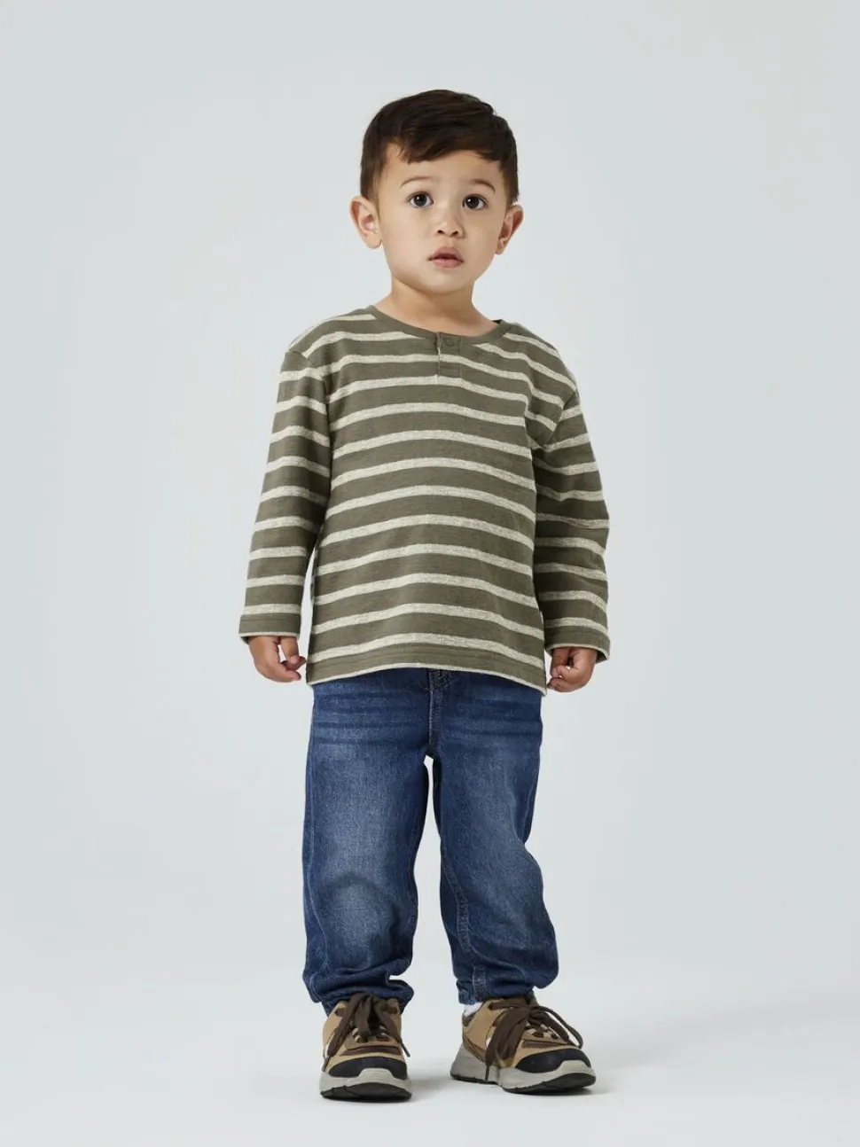 Name Itin luomupuuvillainen pitkähihainen raidallinen paita. Pyöreä pääntie ja regular fit istuvuus.