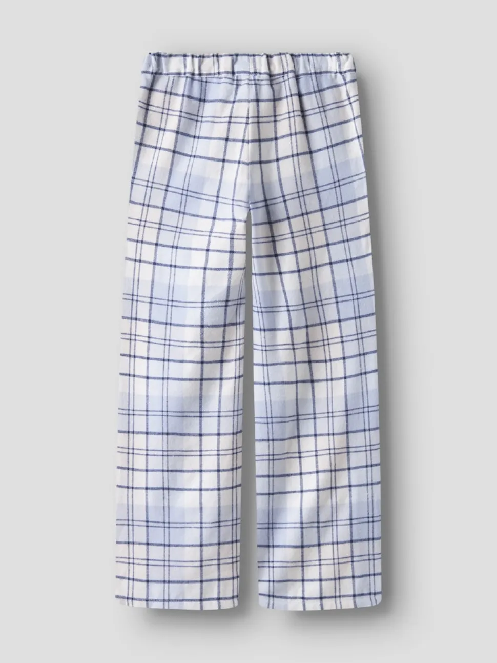 Name Itin ihanan pehmeät ja rennot yöhousut takaavat mukavat illan ja aamun puuhat sekä lempeät yöunet. Housuissa on rento istuvuus ja suorat, väljät lahkeet. Vyötäröllä on säädettävä kuminauha sekä kiristettävä nauha. Pyjamahousut on valmistettu pehmeäksi harjatusta puuvillaisesta flanellikankaasta.